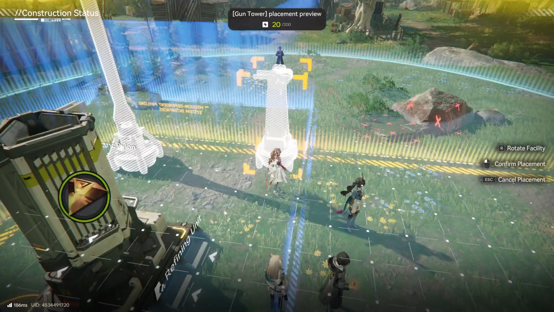 - Unpowered defenses: Gun Towers may be placed correctly but won’t function until powered through the Electric Pylon transmission step.