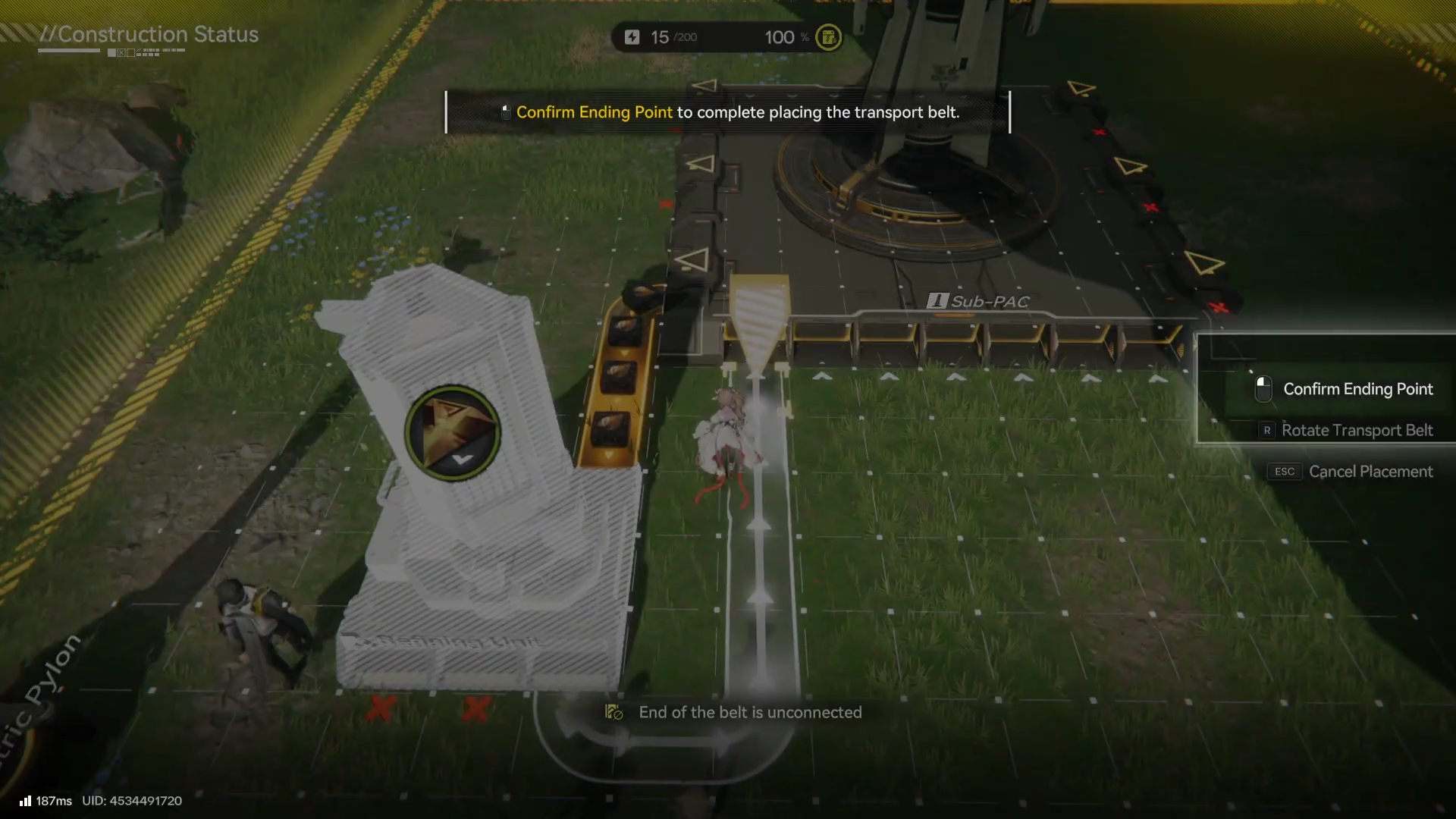 The mission explicitly tells you to check a specified Sub-PAC output port, so rotate your view and confirm you’re working from the right connector. If you connect a belt to the wrong side, the visuals may still look “connected,” but the objective won’t advance because the game is validating the port.