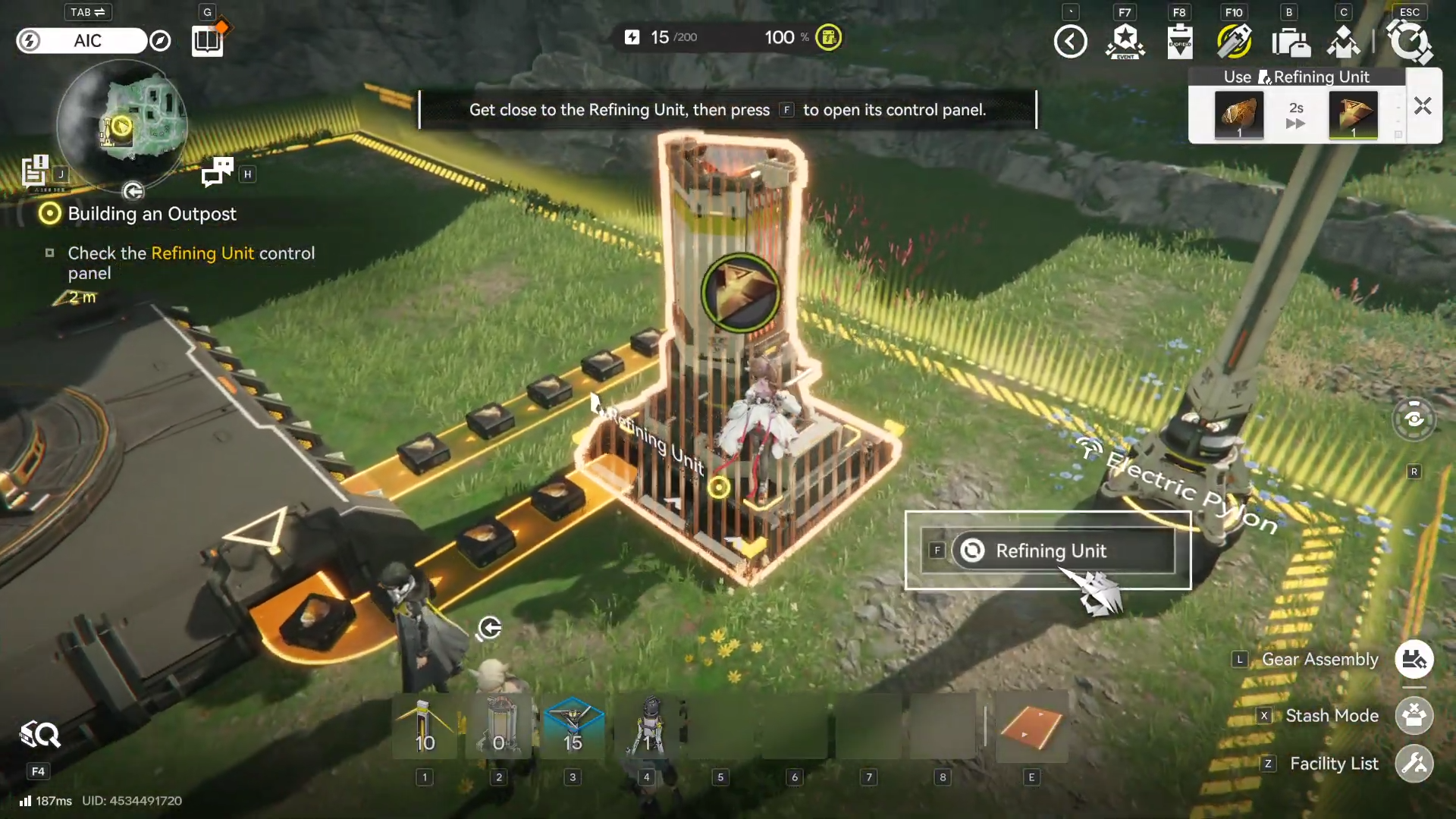 Interact with the Refining Unit control panel when the objective calls for it. This step usually acts like a “sanity check” that the unit exists, is connected, and is recognized by the tutorial sequence.