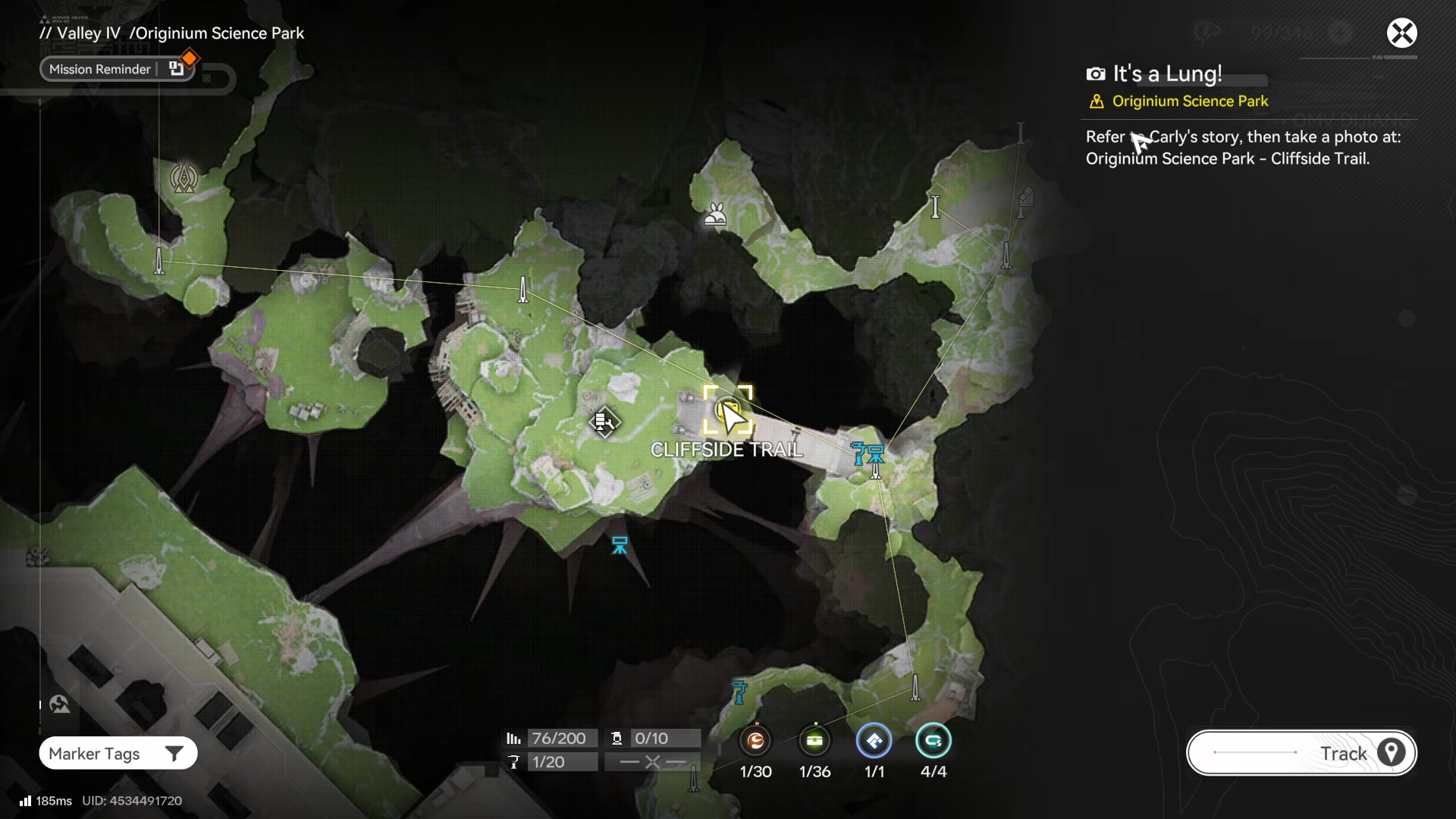 Fast-travel or explore to Originium Science Park – Cliffside Trail in Valley-IV; the camera icon appears on the map once eligible.