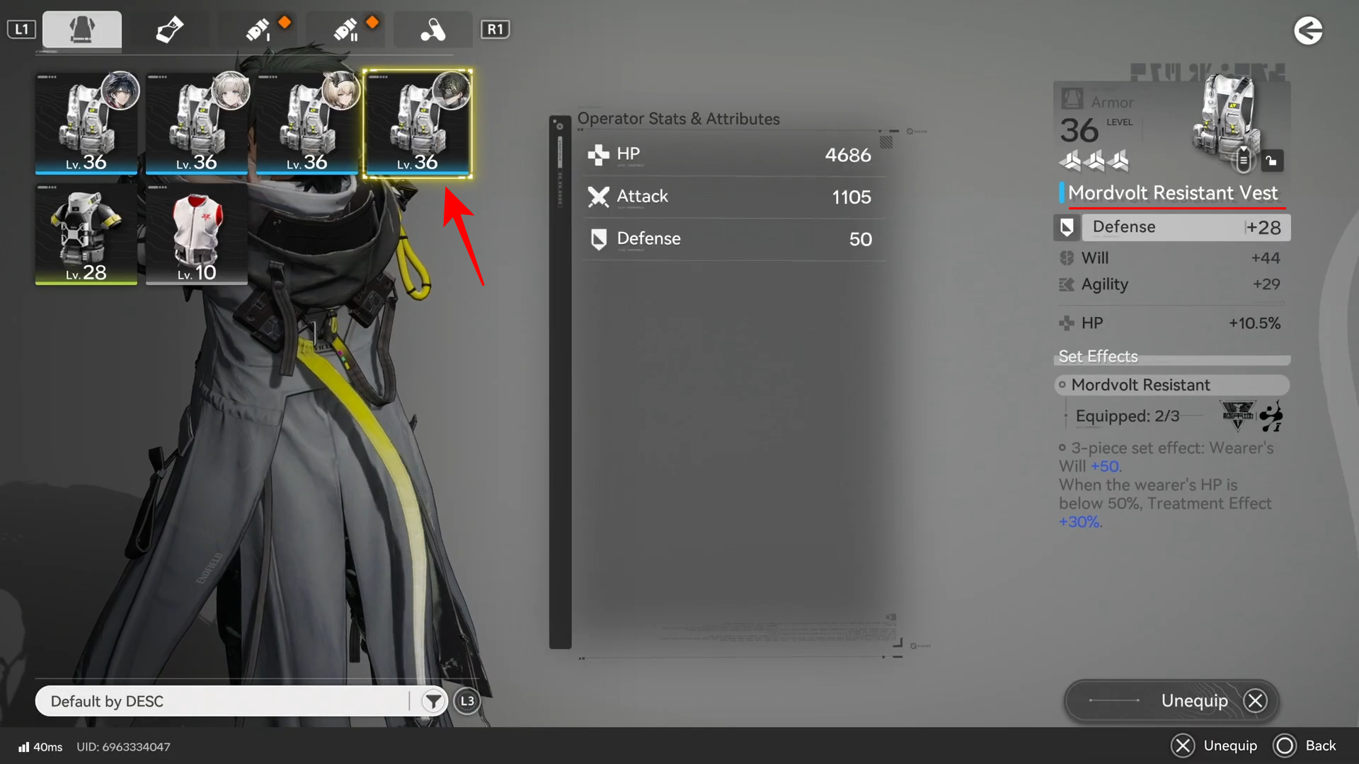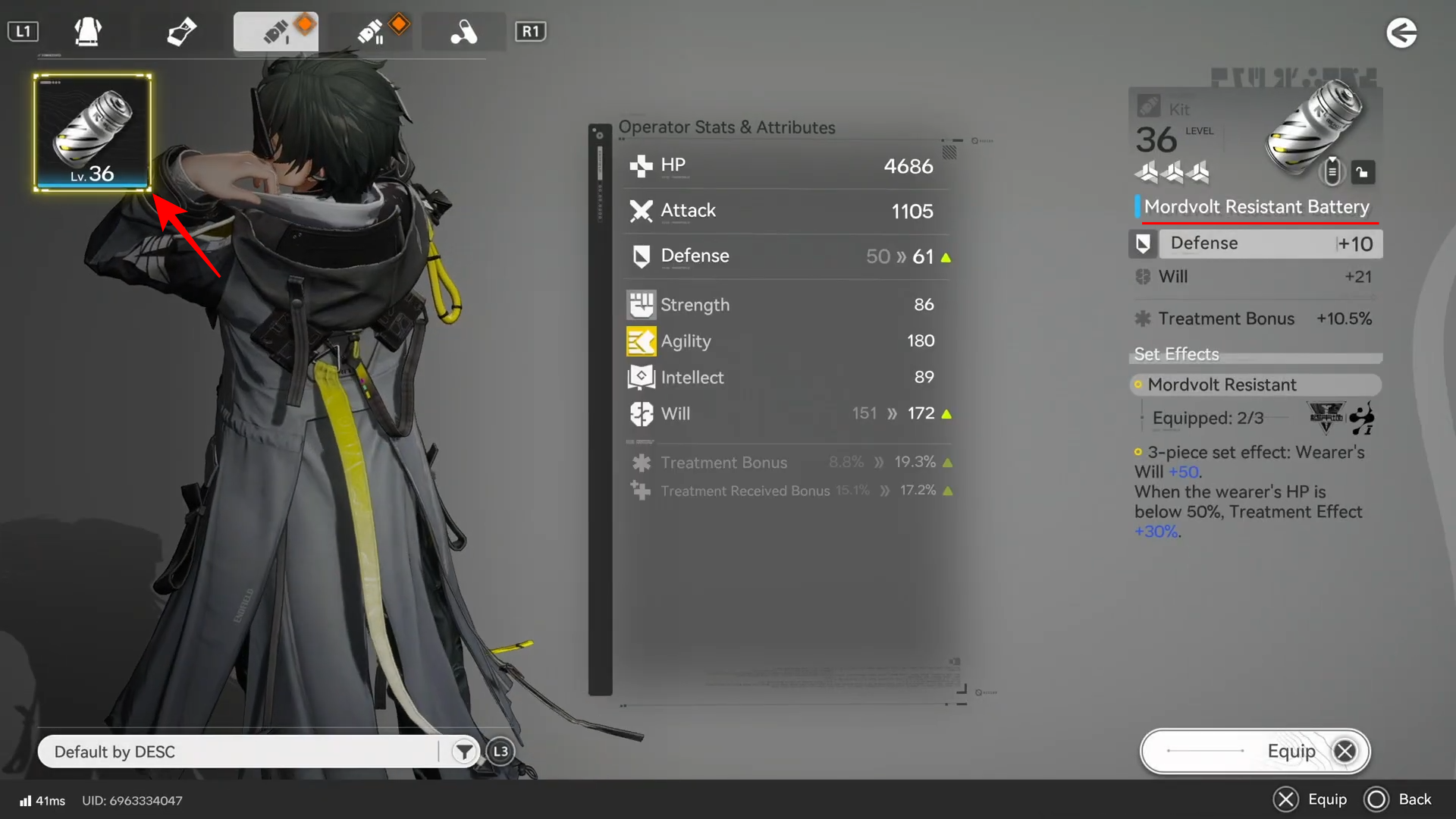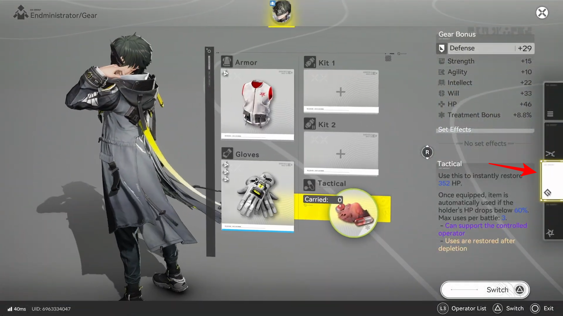 Then open their Gear screen so you can see Armor, Gloves, and both Kit slots.