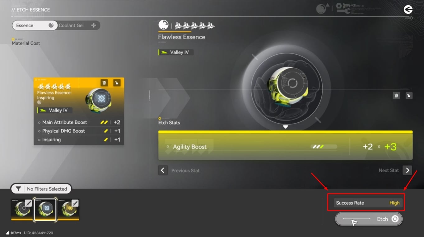 - Etching can fail, but failures do not harm the target Essence and award 10 Coolant.