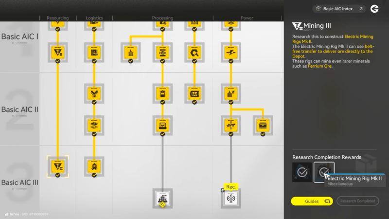 - Electric Mining Rigs Mk II require Mining III (tied to Tier 3 of the Basic AIC Plan / AIC progression).