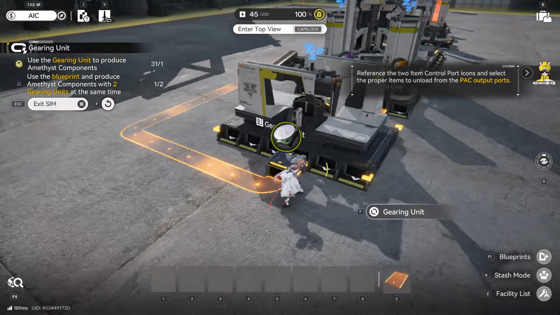 The direct reward is unlocking reliable automated production capacity in your AIC, which supports long-term progression because the factory produces gear materials and other items while you explore or log out. Indirectly, a working Gearing Unit line helps you keep up with the game’s expectation that gear and factory progression stay aligned, since ignoring the factory eventually slows progression “hard.”