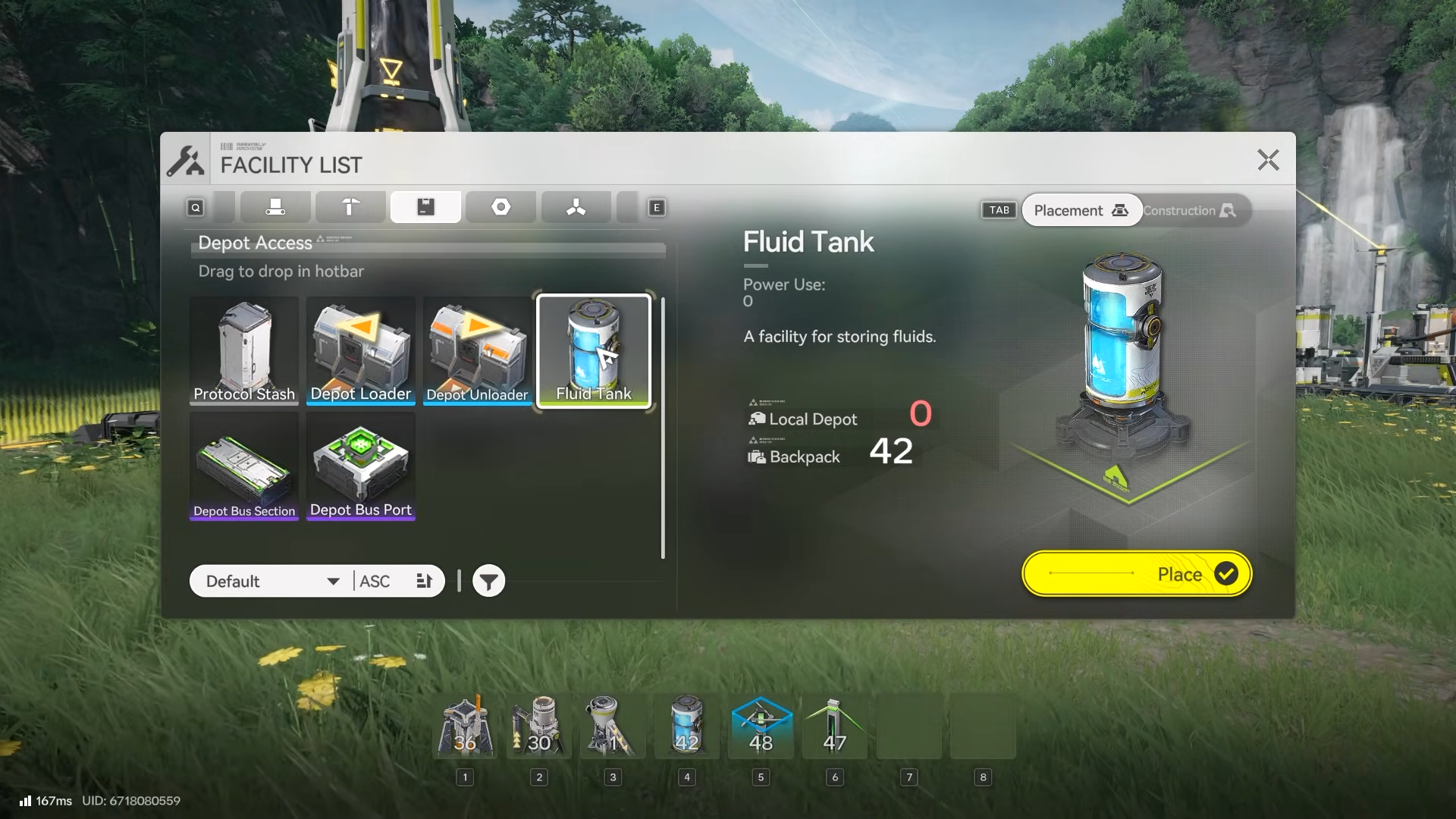 When your fluid tanks are full, enter Build Mode and use Stash Mode (X) to pick them up.