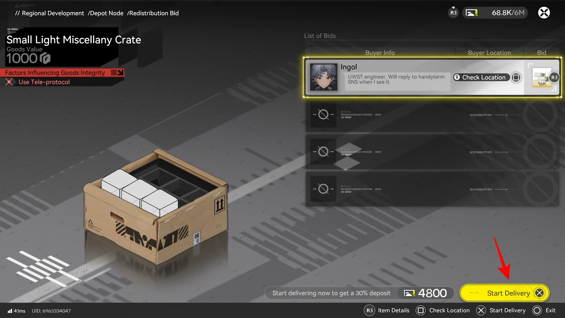 Browse the list and pick any one delivery mission that is currently active and within your reach. For convenience, choose a short‑distance or low‑risk request so you can complete it quickly without extra fights or long travel.