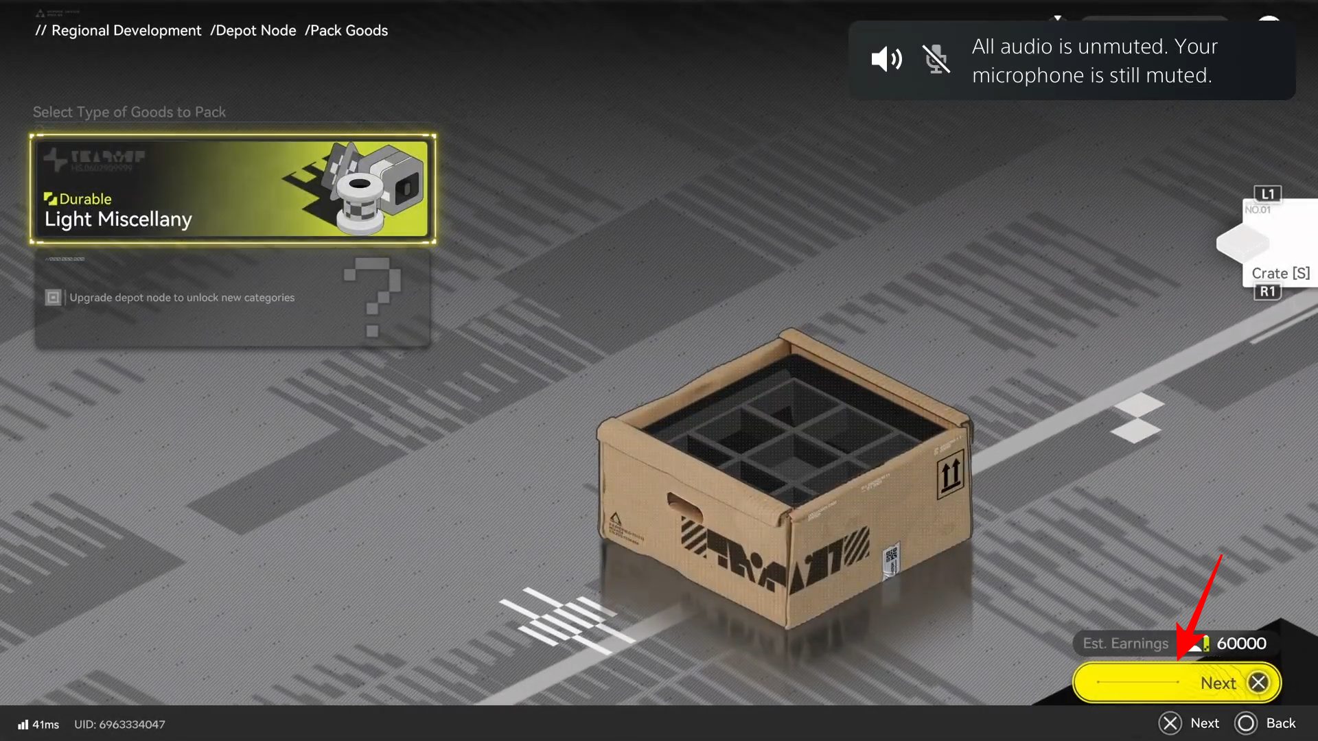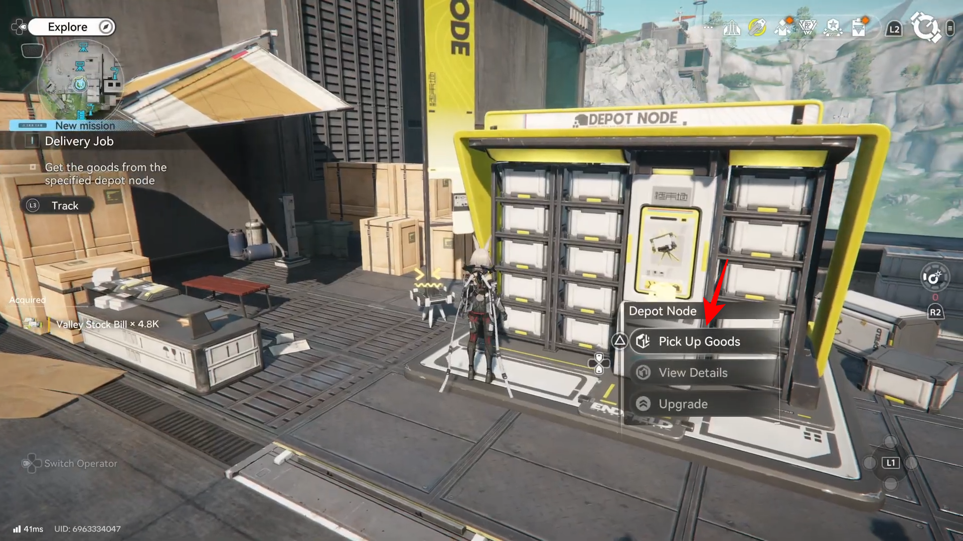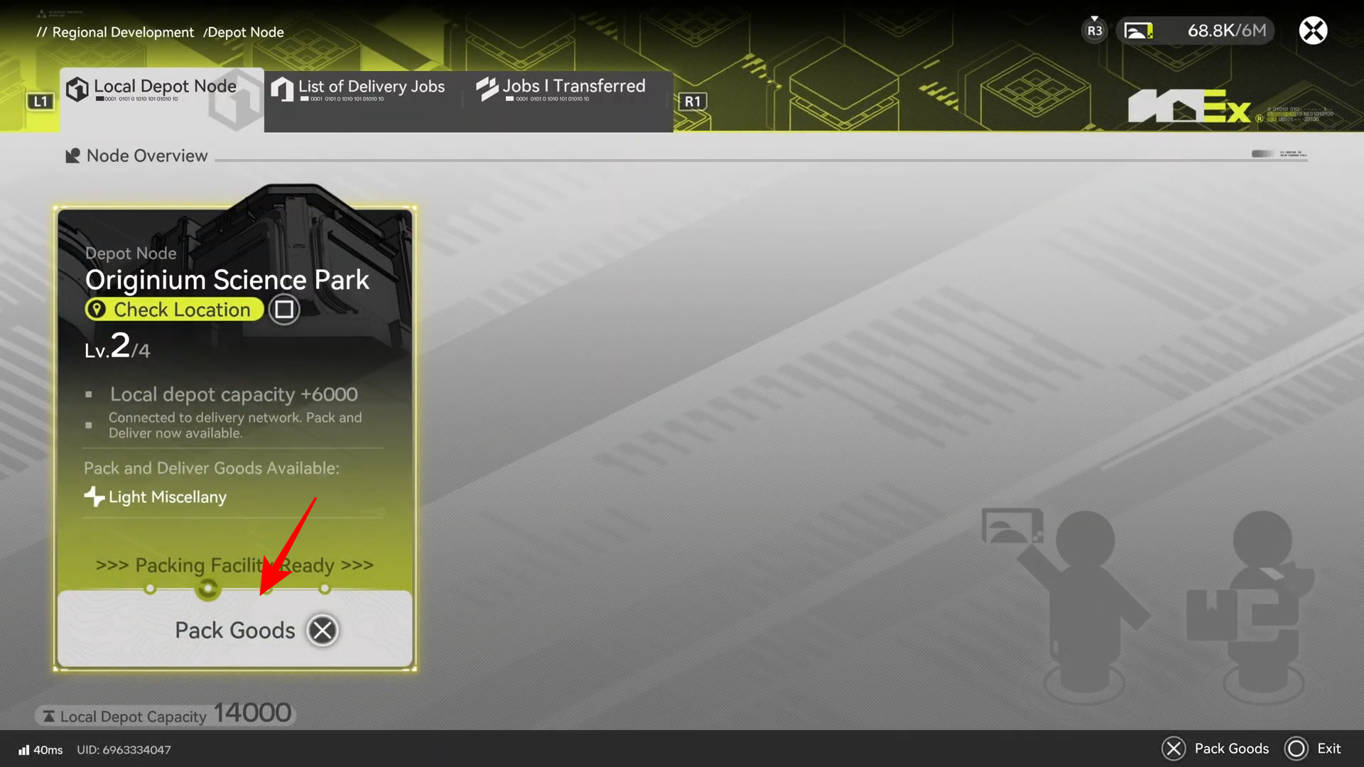 With a Level 2 depot ready, the mission now wants you to use its delivery system a single time from start to finish. Interact with your newly upgraded Level 2 depot node and choose the Pack Goods.