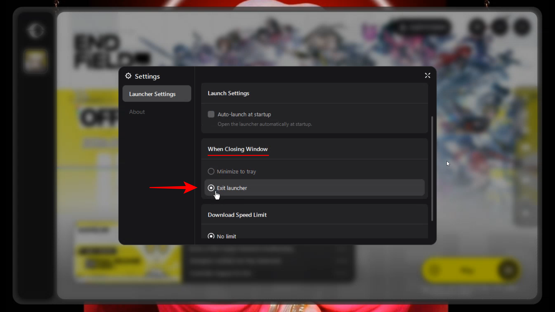 If you find that the Arknights Endfield launcher continues to run in your system tray even after you click the close button, you can adjust the behavior in the settings to ensure it shuts down entirely.