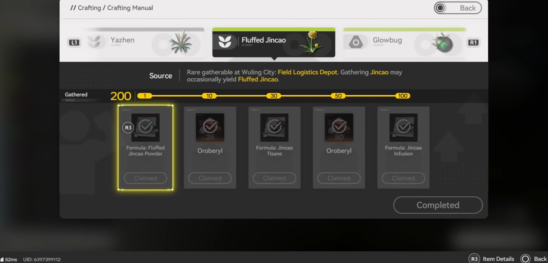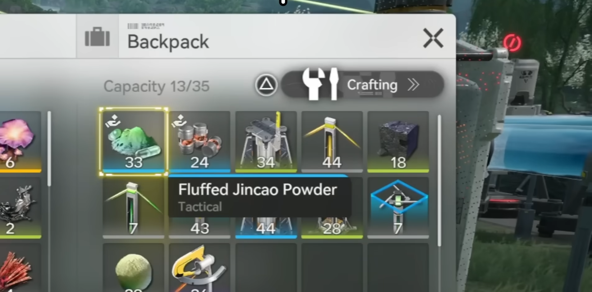 Open the crafting menu and craft Fluffed Jincao Powder using the Fluffed Jincao you got from harvesting.