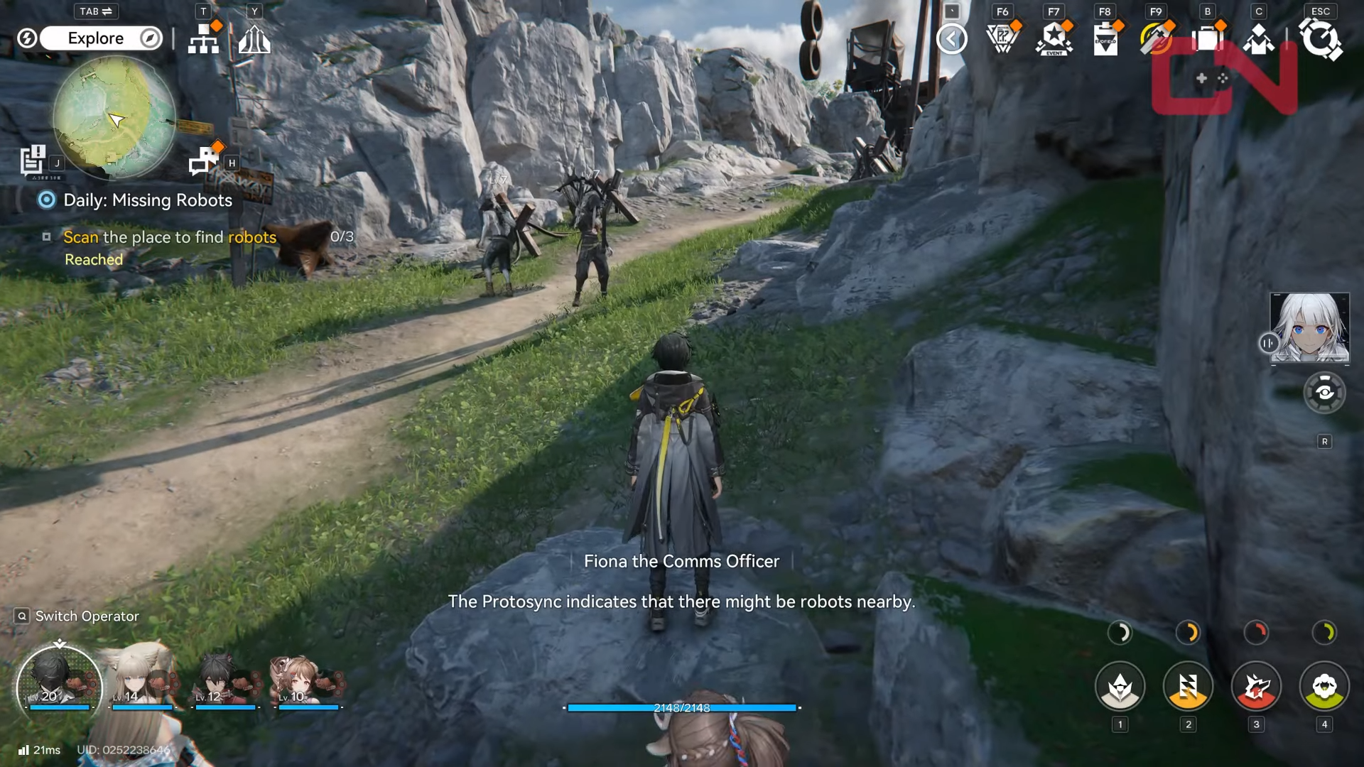 When you select “Daily Missing Robots” in your mission log, the game directs you to a specific map location and displays a search area shaped like a large circle. Inside that circle, you’re searching for interactable box clusters; when you press the interact key (commonly shown as “F” on PC), you place a “communication beacon,” which counts as one of the three required interactions.