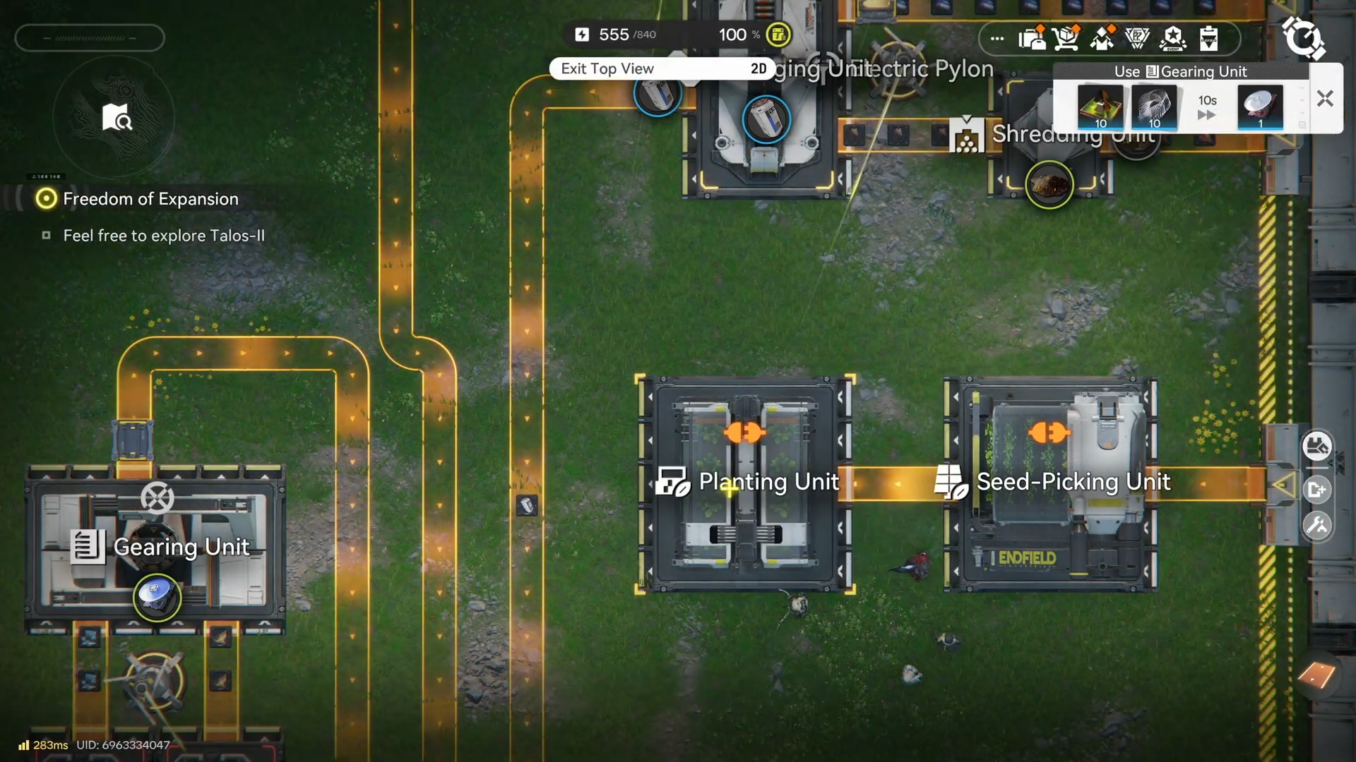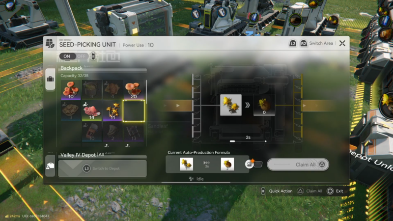 - Required facility pieces: Seed-Picking Unit, Planting Unit, Depot Loader, and Depot Unloader (for smoother routing and less space usage).
