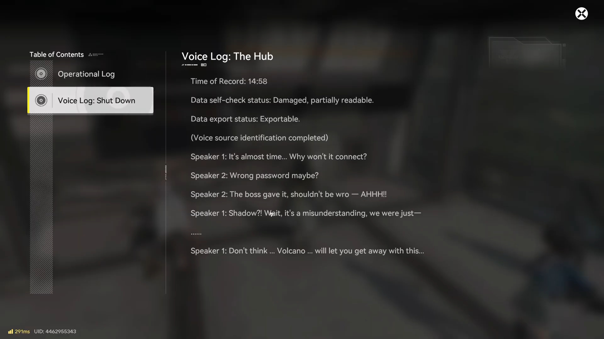 | Start | Accept the task to help with Thurston’s investigation in the Hub |