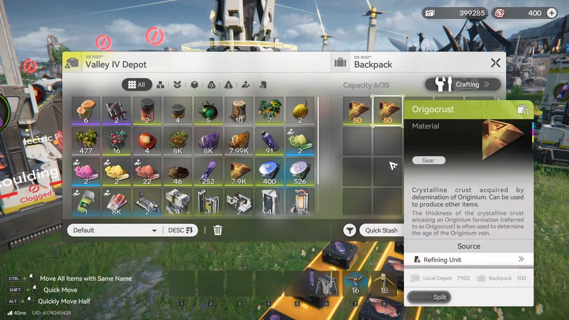 Ensure you have at least two full stacks of Origocrust in your backpack before heading out.