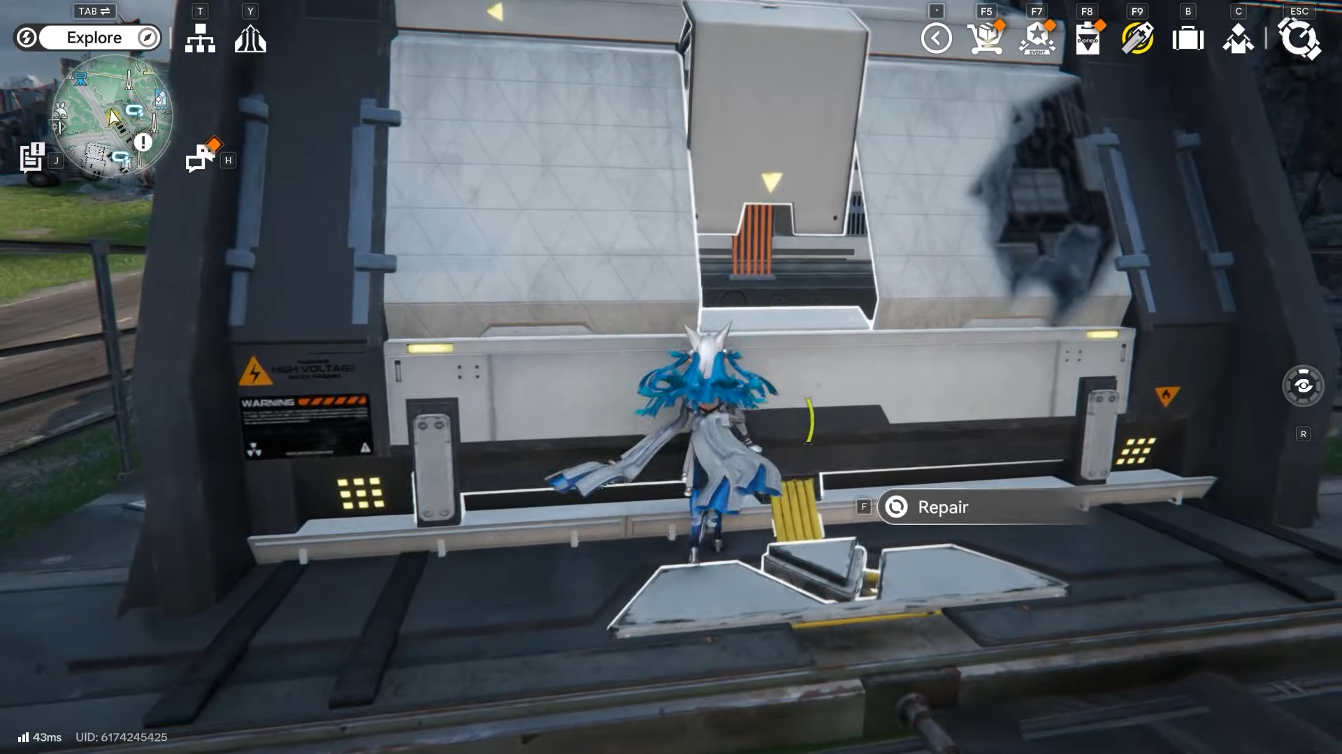 First, head to the upper side of the Hub base power plant to find an electrical nexus.