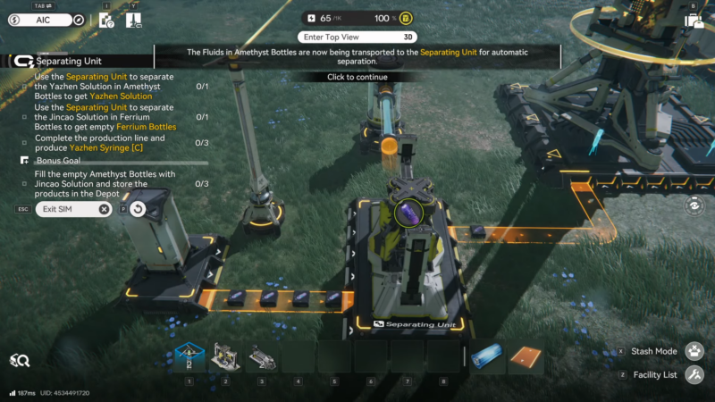 - The objective and Bonus Goal depend on maintaining a working production flow using the Separation Unit.