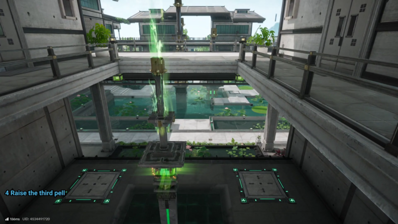 | 2 | Raise the first pell | Interact with the first pell and complete its required action to raise it. |