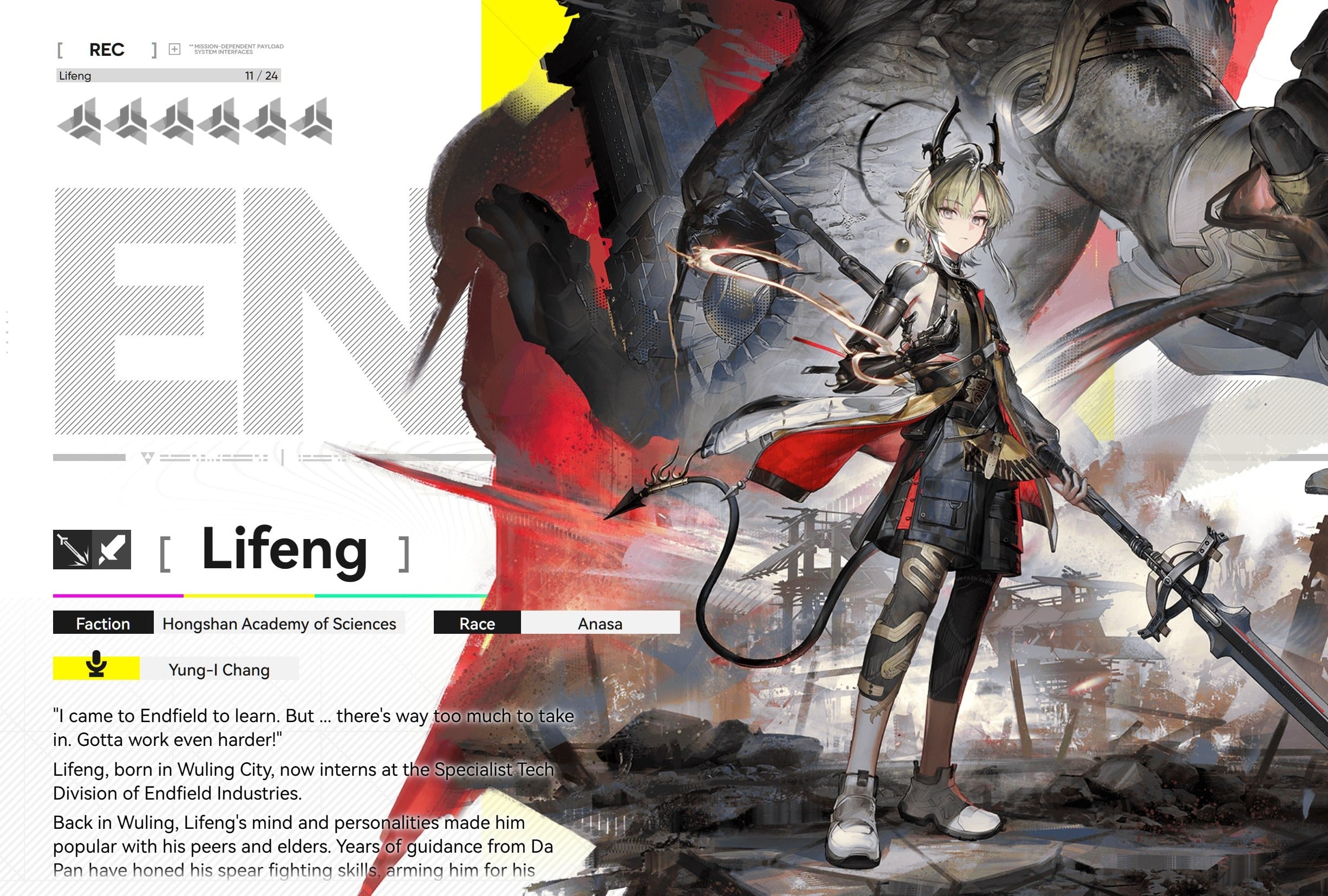 Lifeng: An Anasa race intern at the Specialist Tech Division of Endfield Industries, directly connected to Hongshan Academy. Despite her small stature, she’s a 6-star Guard with considerable combat potential.
