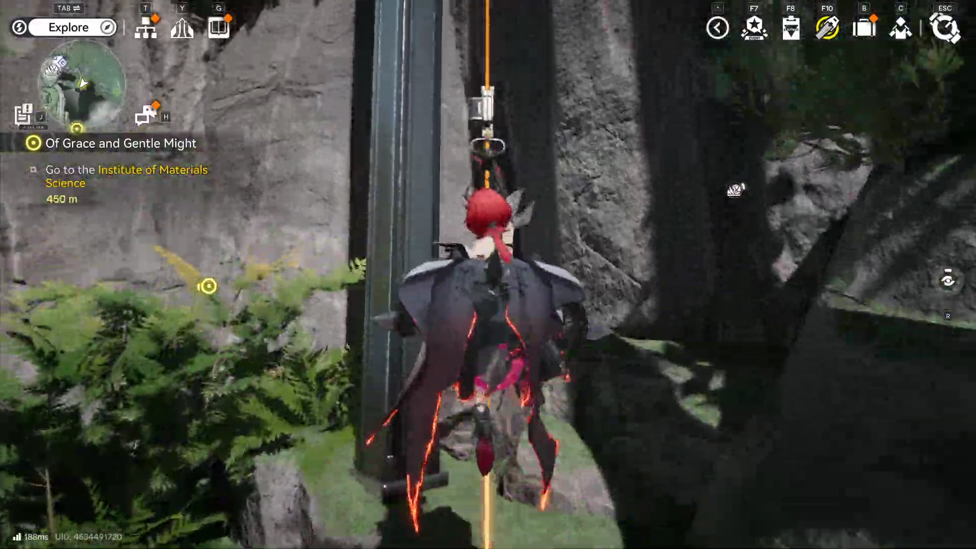 From the Wuling AIC area, face toward the southwest and scan the cliff edge for the rope that is already placed in the world.