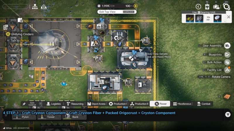 • Purple gear often bottlenecks on Cryston Components, so a stable production line matters more than menu navigation.