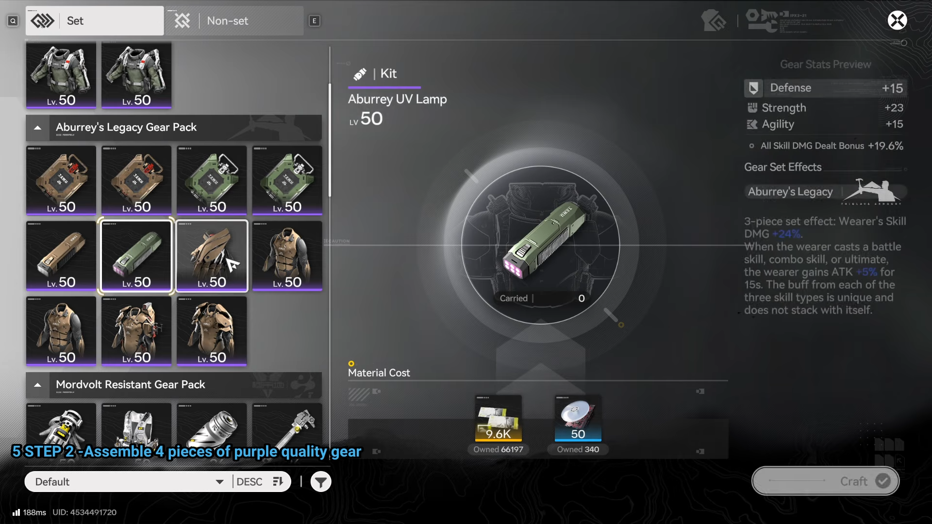 - Gear uses four slots: Armor, Gloves, and two Kit pieces; crafting one per slot is the cleanest way to hit 4/4.