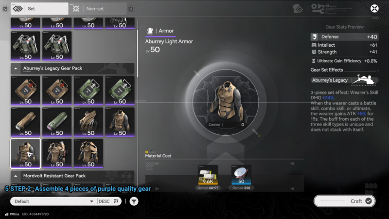 • Gear uses four slots: Armor, Gloves, and two Kit pieces; crafting one per slot is the cleanest way to hit 4/4.