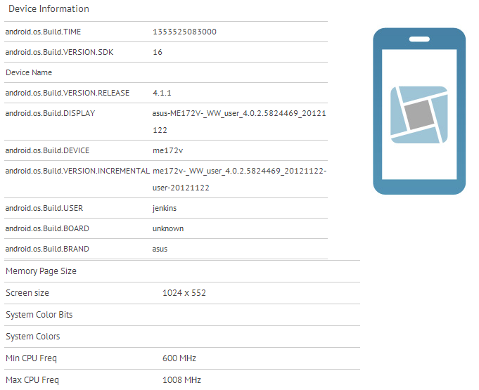 To add fuel to these rumors, a mysterious and yet unpublished Asus device, model number ME172V has now popped up in a GLBenchmark test result. The results data shows an Asus device, running Android 4.1.1 Jelly Bean and a screen size of 1024 x 600. Also shown are the CPU clock details which reveal a minimum clock speed of 600 MHz and a top speed of 1008 MHz, indicating the presence of a 1 GHz processor. With the current advancement in processor technology, it could well be a dual-core Snapdragon S4 in there, which currently graces many a mid-range device these days.