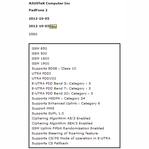 Well, while the official specs still remain unconfirmed, the GCF or Global Certification Forum has just approved the Asus Padfone 2, and it is confirmed that the Padfone 2 will support LTE connectivity for Asia, Latin America & Europe. A separate version of the Padfone 2, for the US market is likely to show up soon enough, as it is too large a market to ignore or have a delayed release for such an awaited product.