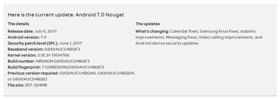 Arriving as build number G930AUCU4BQF3, the update also includes bug fixes and stability improvements. In addition, fixes for a few other issues are also bundled with the update which includes calendar fixes, Samsung Knox fixes and Messaging fixes. The update also brings improvements for video calling feature.
