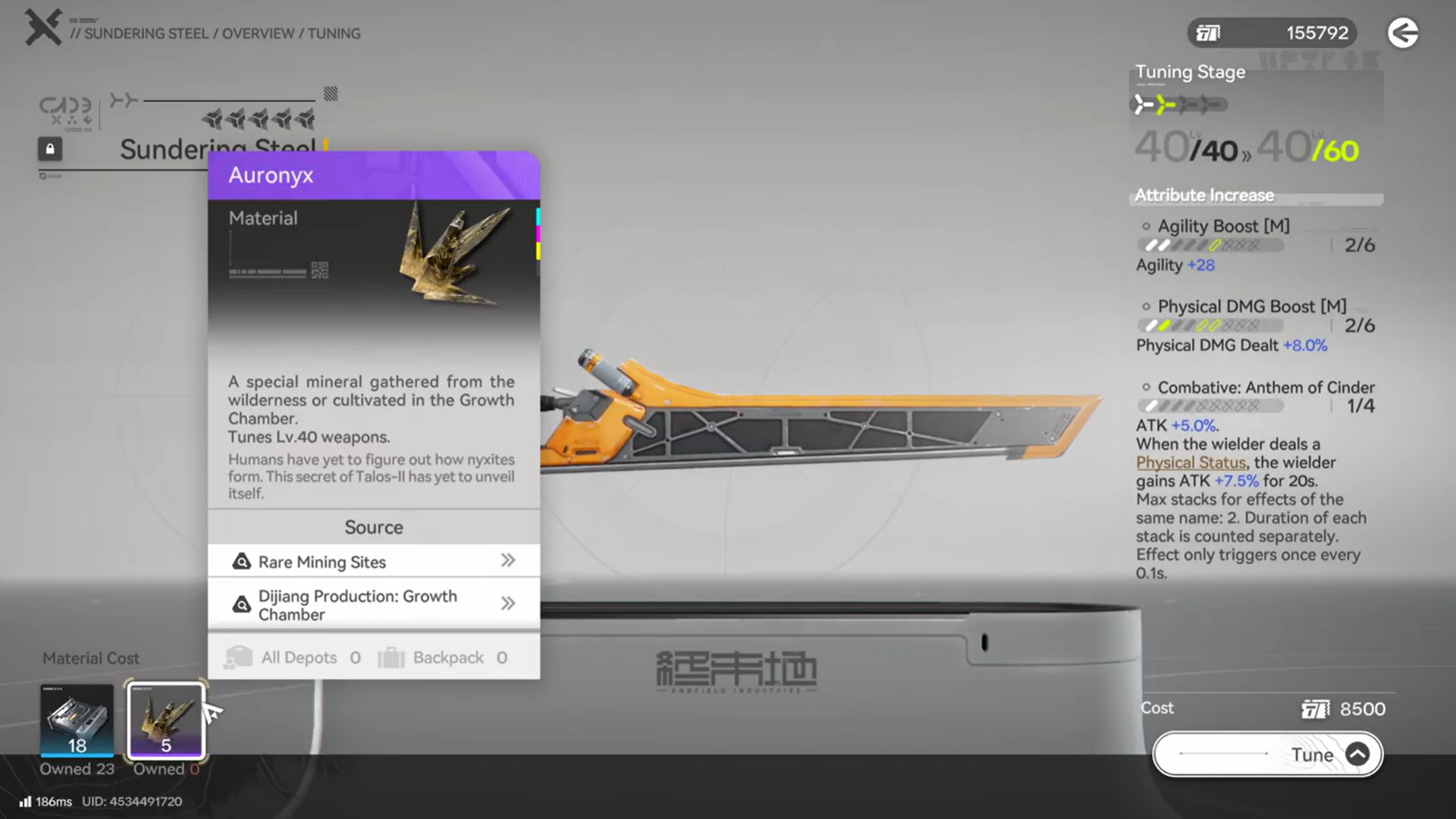 Auronyx is primarily tied to weapon tuning and advancement. Once a weapon reaches level 40, standard materials are no longer enough. Auronyx becomes a mandatory component for pushing weapons into higher tiers, unlocking: