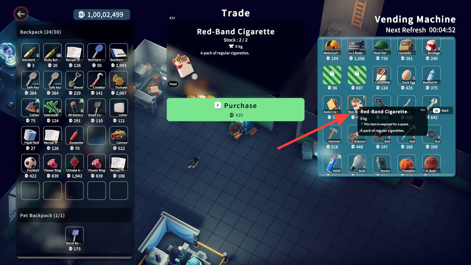 Locate or buy 1 Red-Band Cigarette in the game. Red-Band Cigarette can typically be found in shops, vending machines, or as loot in the Ground Zero.