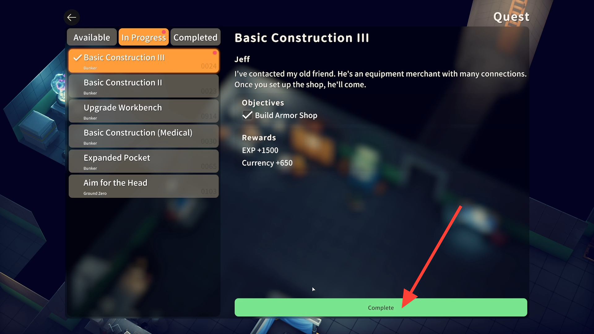 Once you reach the "Basic Construction III" quest in Escape from Duckov, you’re only a few steps away from unlocking advanced defensive gear. This guide focuses on that quest’s requirements, objectives, and the step-by-step process to successfully open the Armor Shop in your bunker.