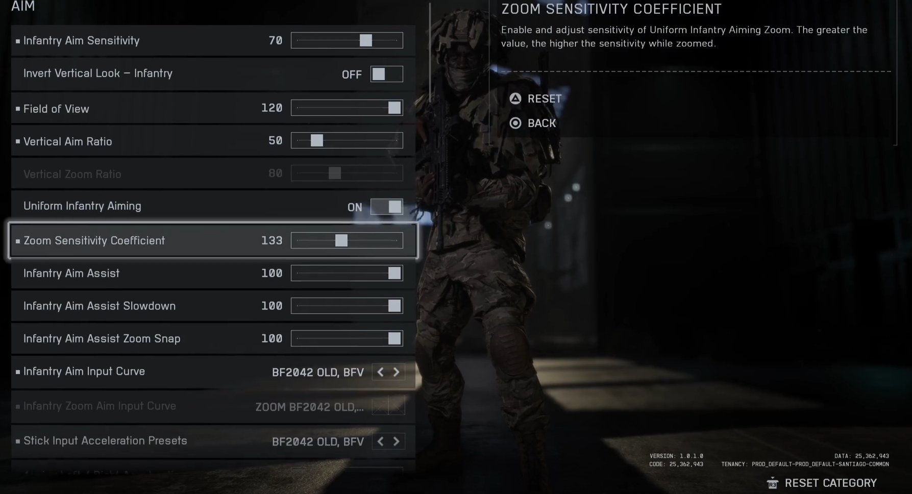 | Infantry Aim Assist | Base strength of aim assist in infantry / foot combat | 100 (max) |