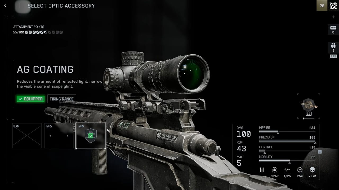 The Anti-Glare Coating accessory becomes crucial for reducing scope glint, though it requires significant weapon mastery to unlock.