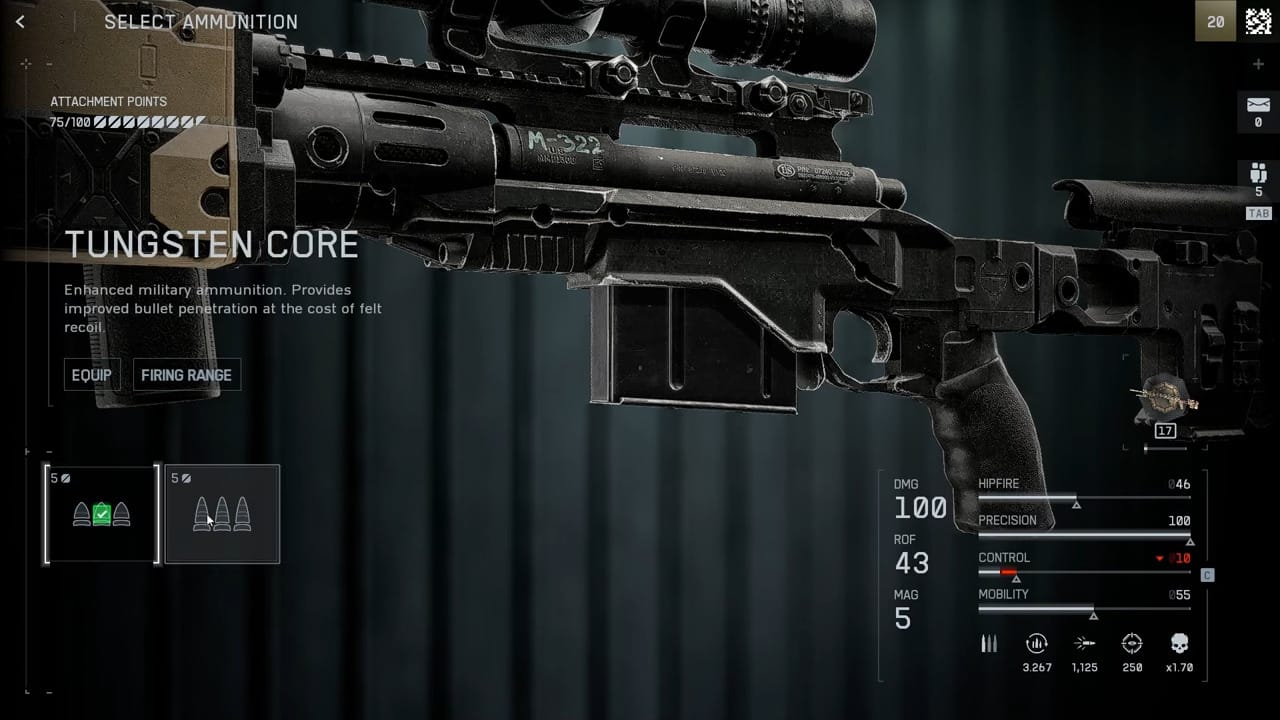 Ammunition: Match Grade or Tungsten Core for enhanced range and penetration.