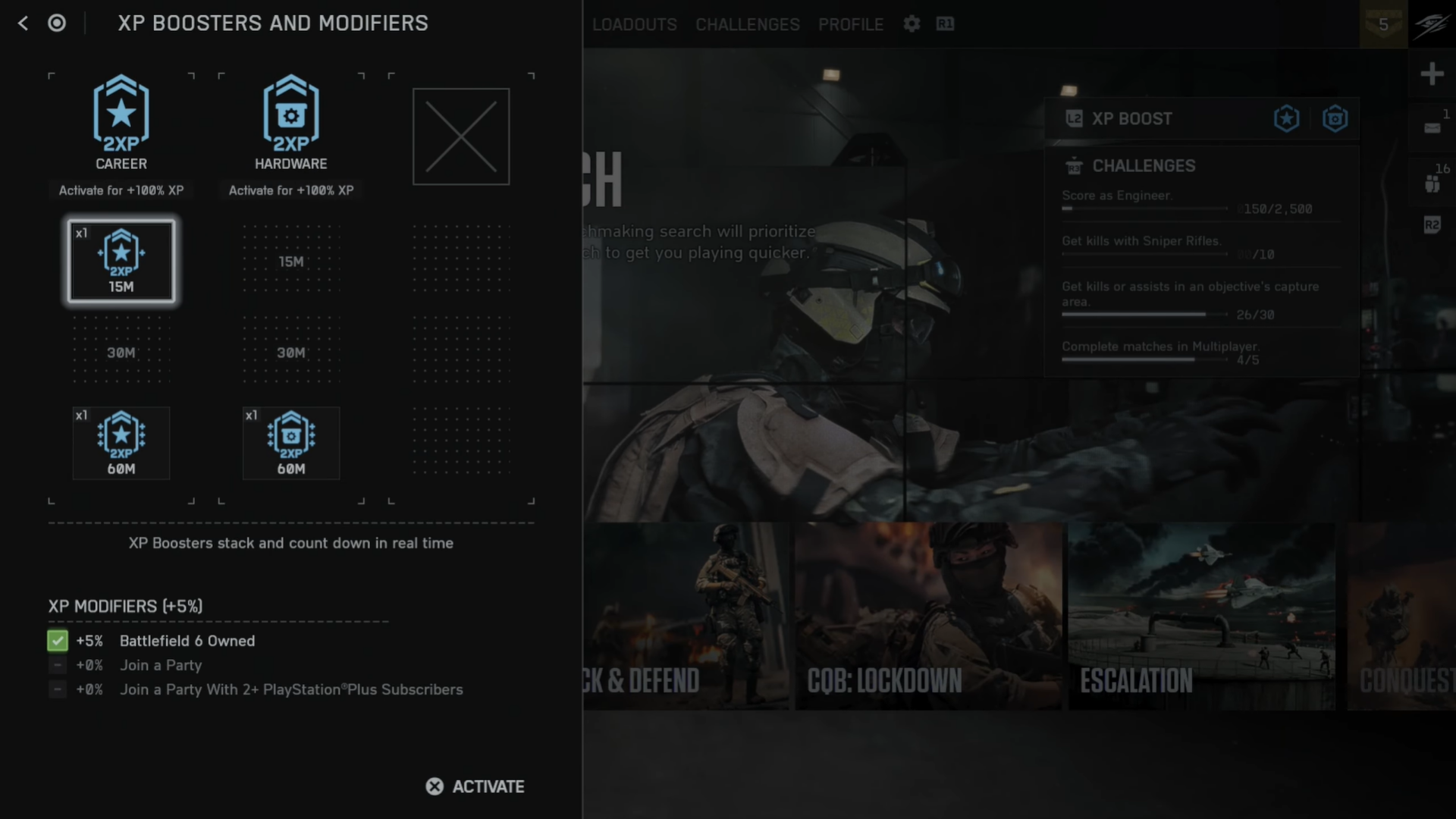 XP tokens dramatically increase progress, but note that their timers tick in real time. Always plan a dedicated session before activating them. You can earn tokens from challenges, events, or sometimes as compensation from DICE.