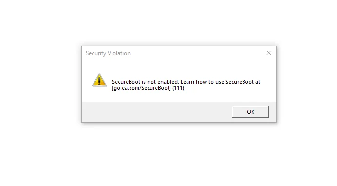 There are a few different type of error messages pertaining to SecureBoot, but they all mean the same thing.