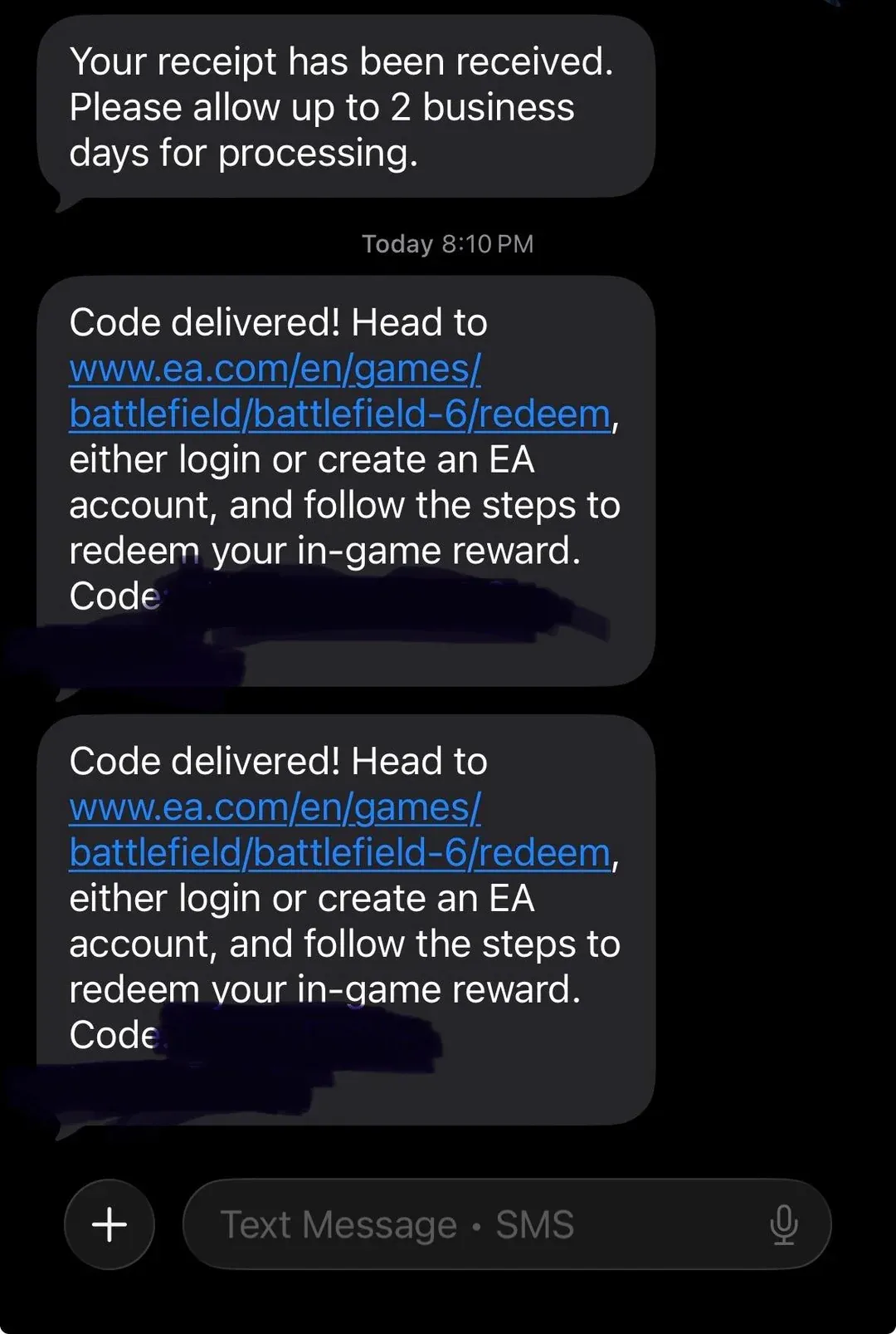 Receive your official Battlefield 6 Red Bull dog tag digital code by email or text message. The official online purchase option delivers codes instantly.