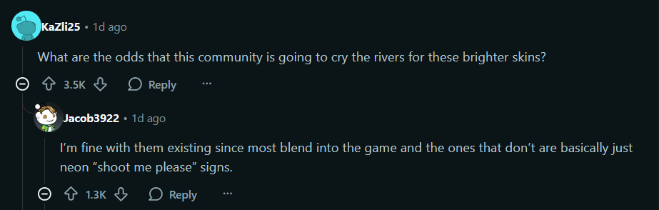 - Players are divided, with some criticizing the skin for being too flashy and immersion-breaking, while others defend it as still relatively grounded.