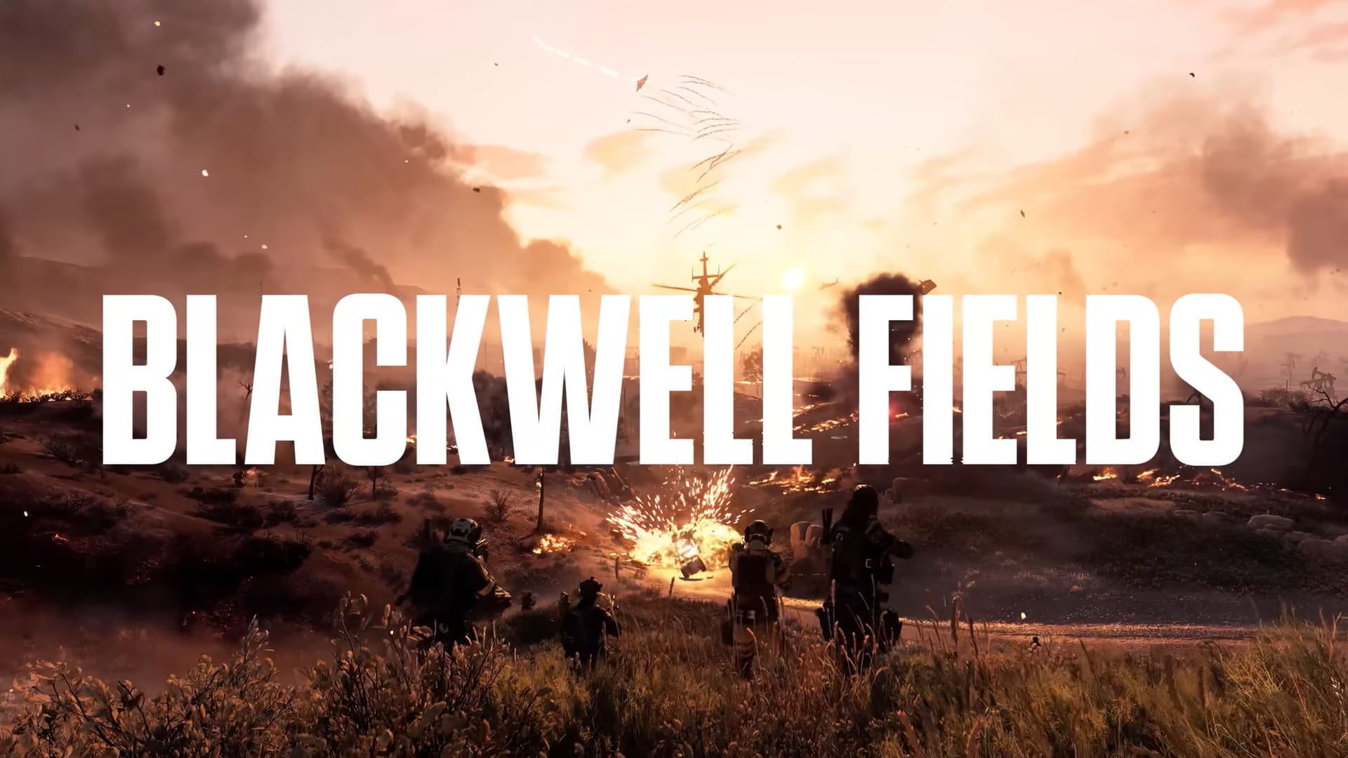 Blackwell Fields is a large-scale map set on an oil field and air base in California, featuring open terrain conducive to vehicle combat including helicopters, planes, and tanks. The map’s environment includes burning horizons and oil wells, adding dramatic visual and gameplay elements.