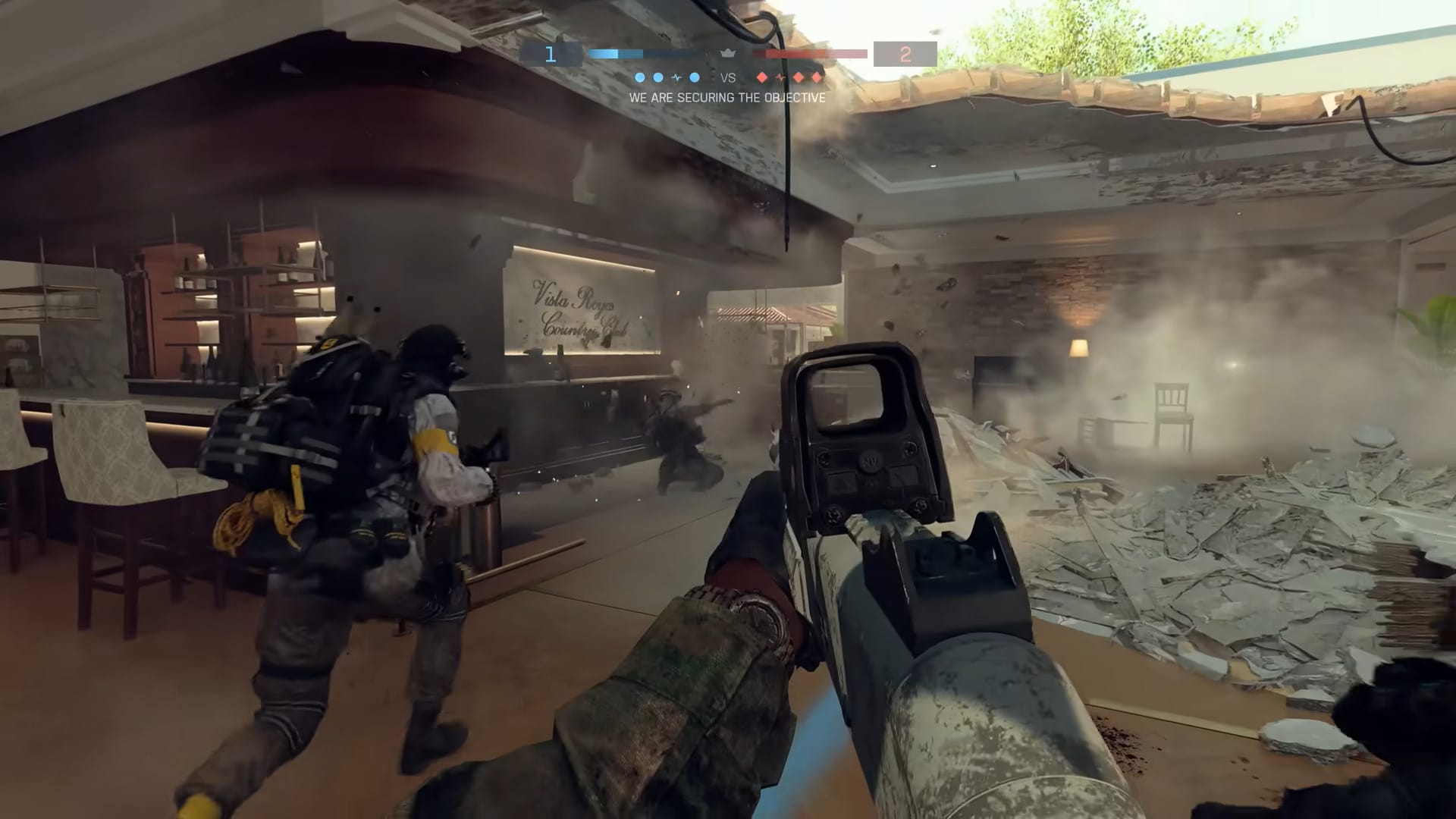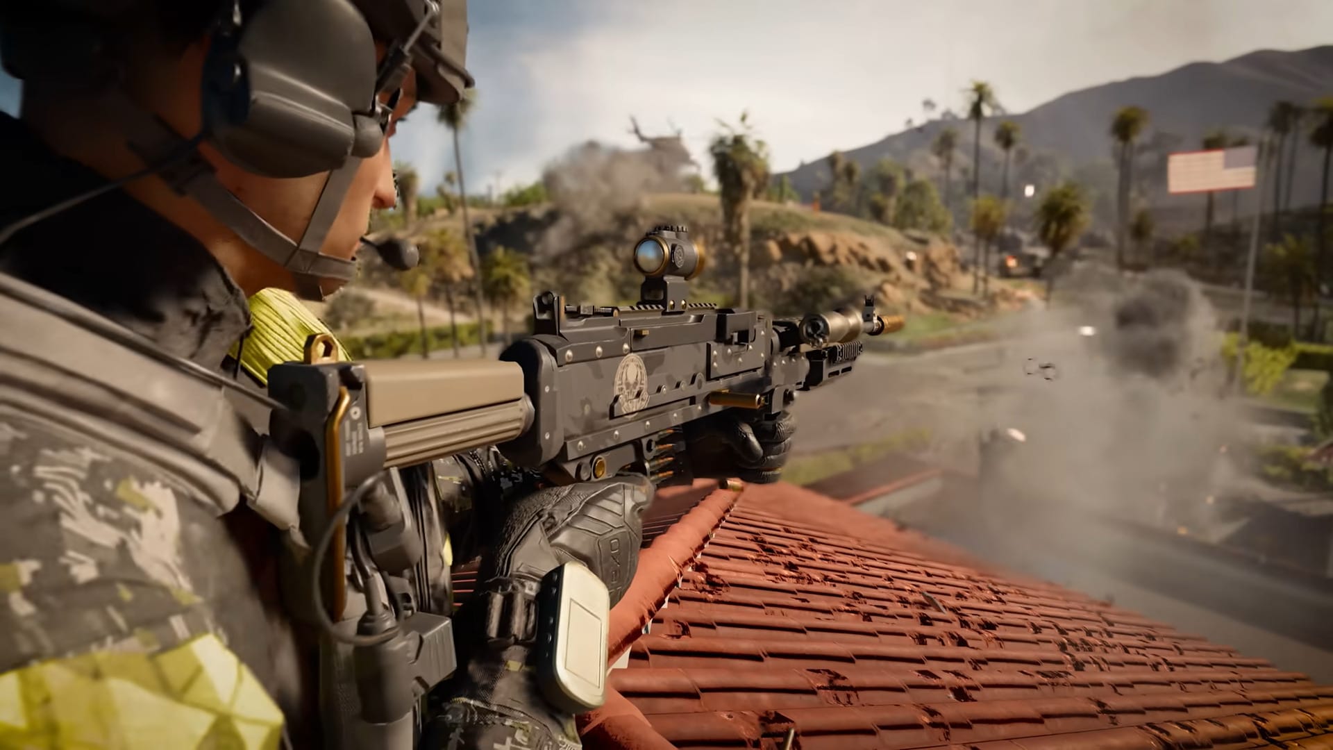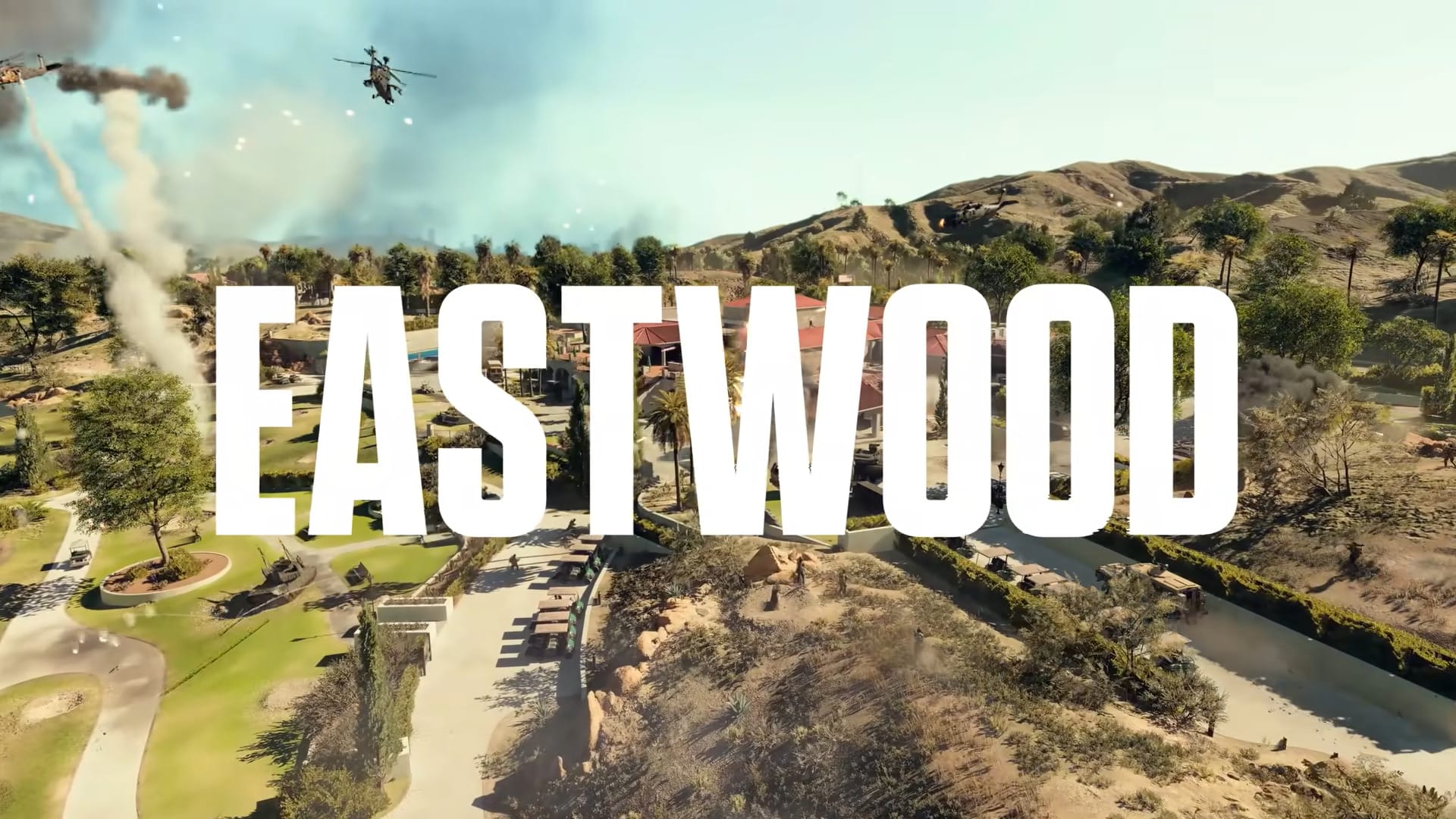 Eastwood represents a suburban California villa and golf retreat, turning usually peaceful locales into a frontline battleground. It encourages mixed combat styles with significant use of land vehicles and helicopters. A unique addition is the drivable golf carts players can use across the golf course and residential areas.