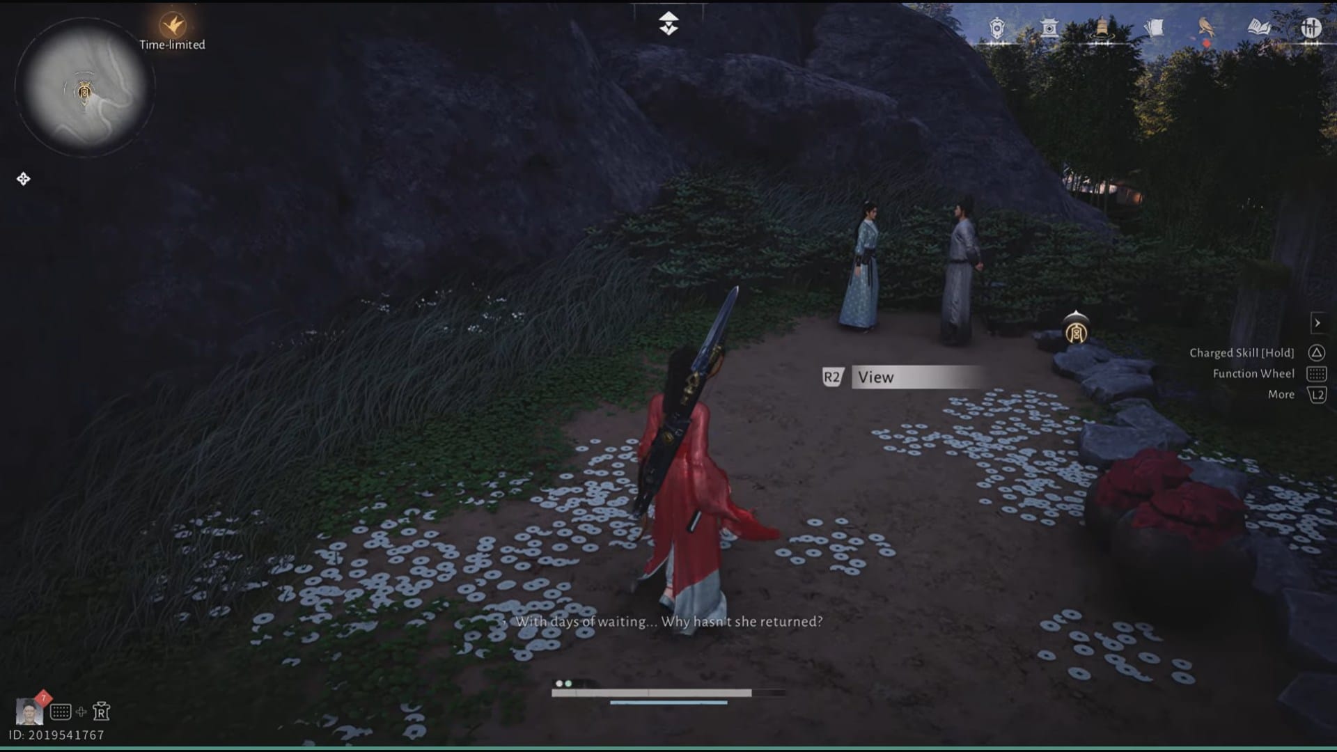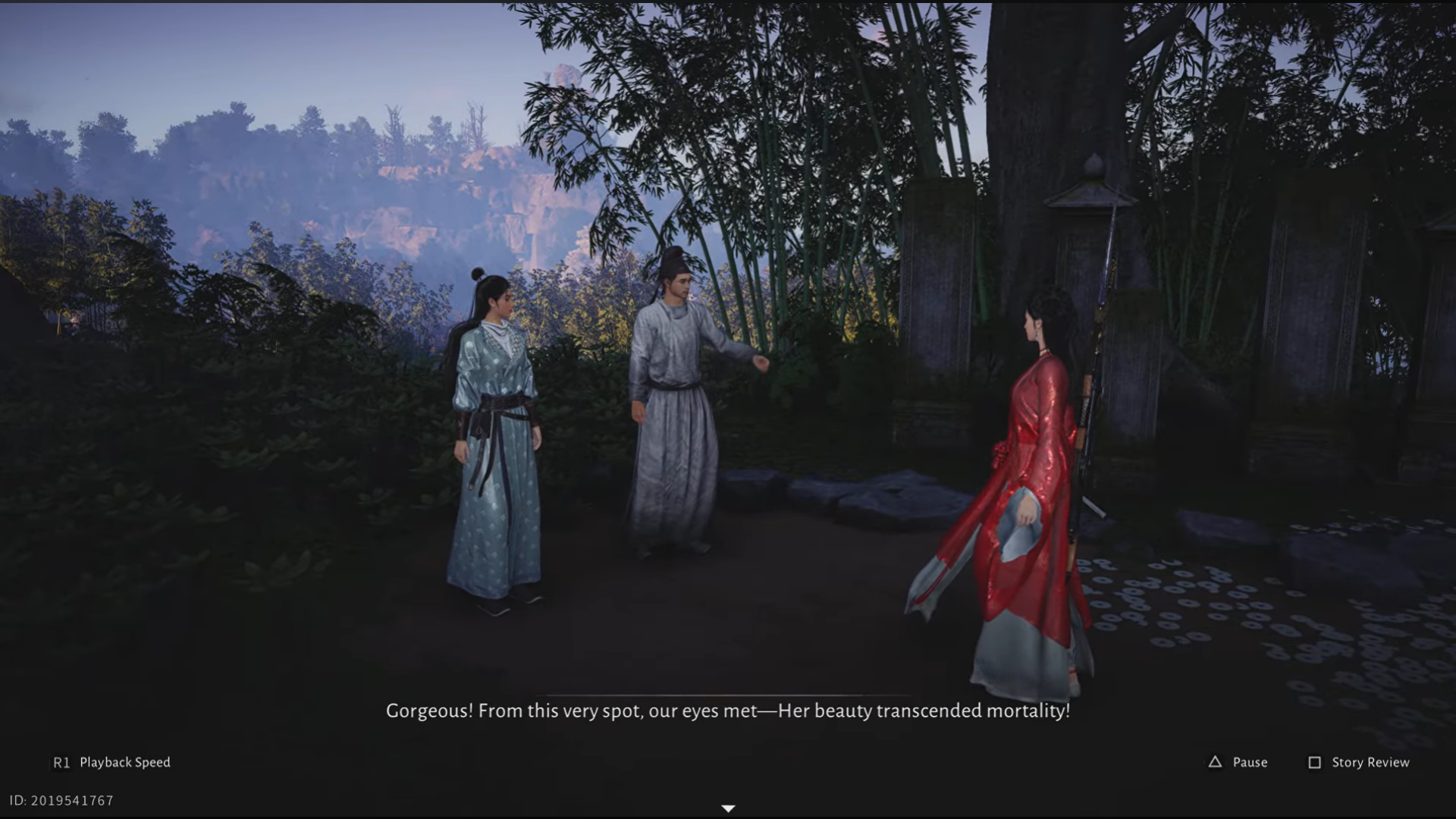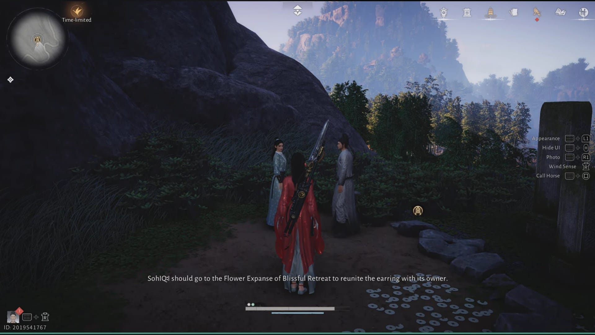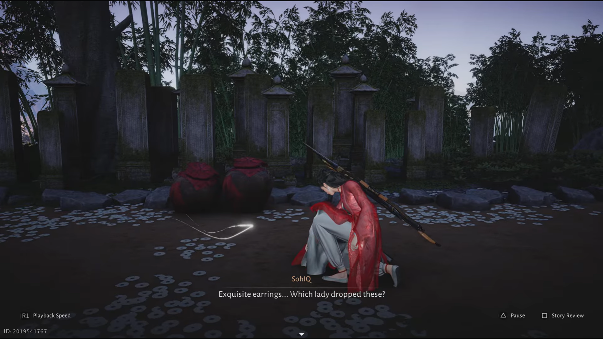 When you get to the location in Flower Expanse, you will see a shiny earring on the ground. On viewing it, the NPCs start a conversation about a woman's exquisite beauty.