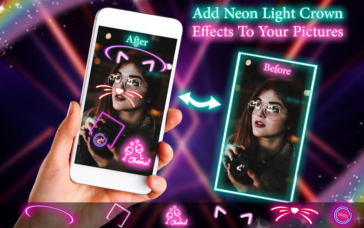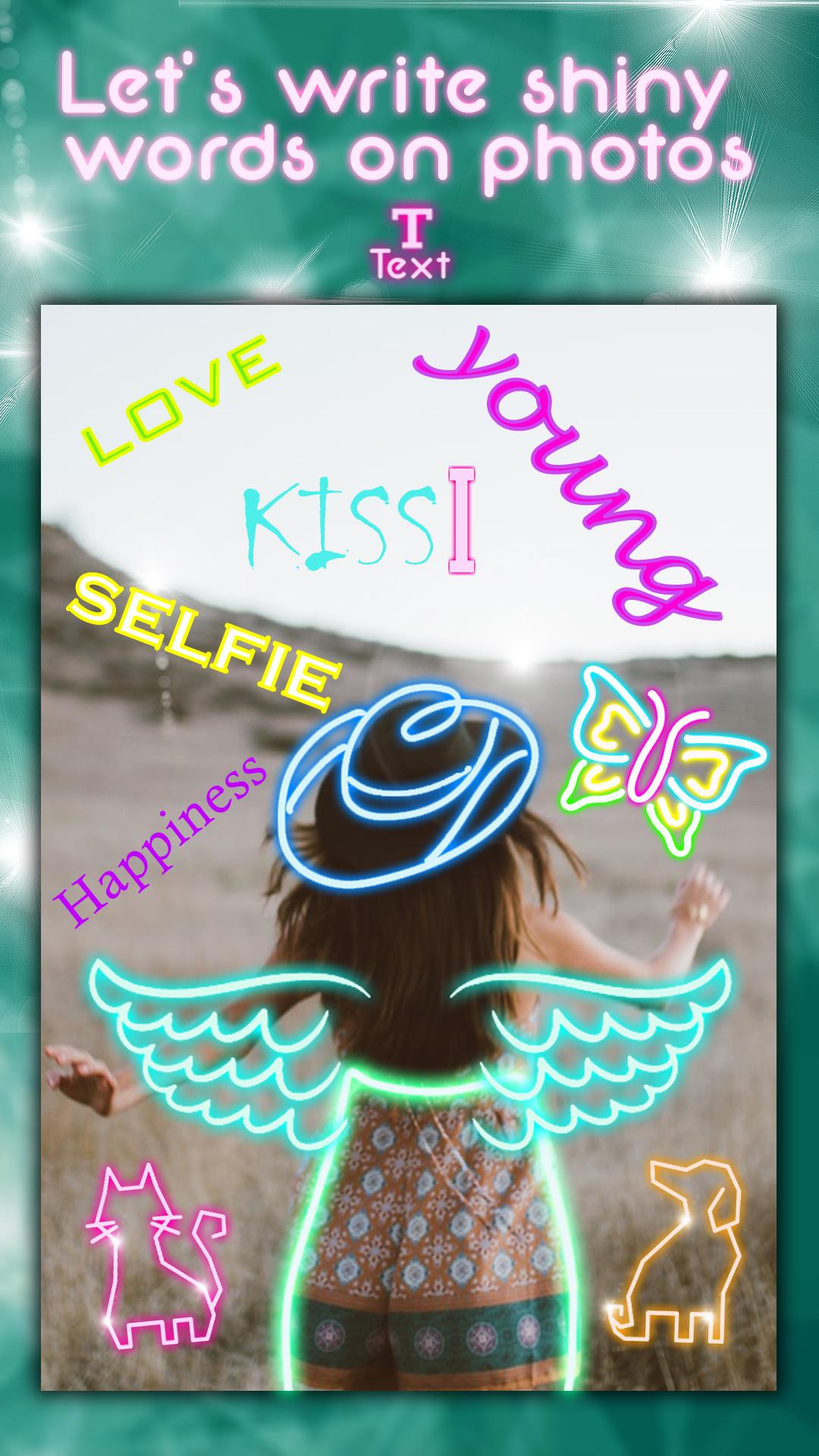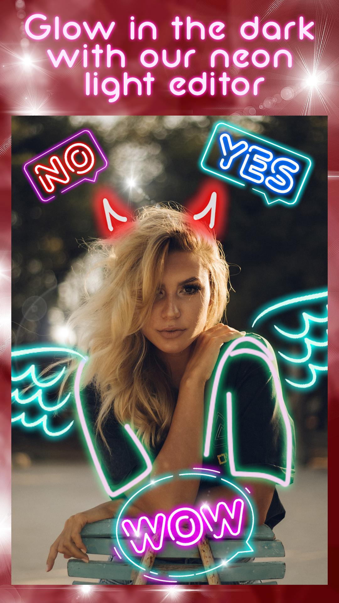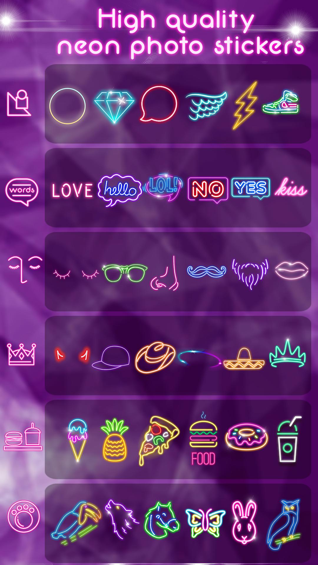 This is another lightweight offering that allows you to add neon stickers to your photos. The app is extremely lightweight and easy to use which makes it a perfect choice for beginners. You can choose from a wide variety of different filters, including the likes of neon shapes, neon signs, neon texts, glasses, headgear and more.