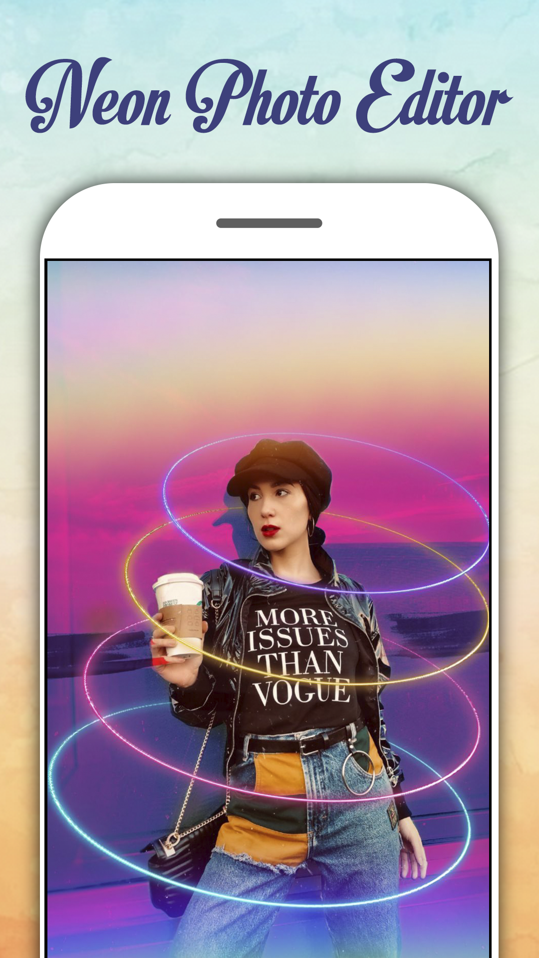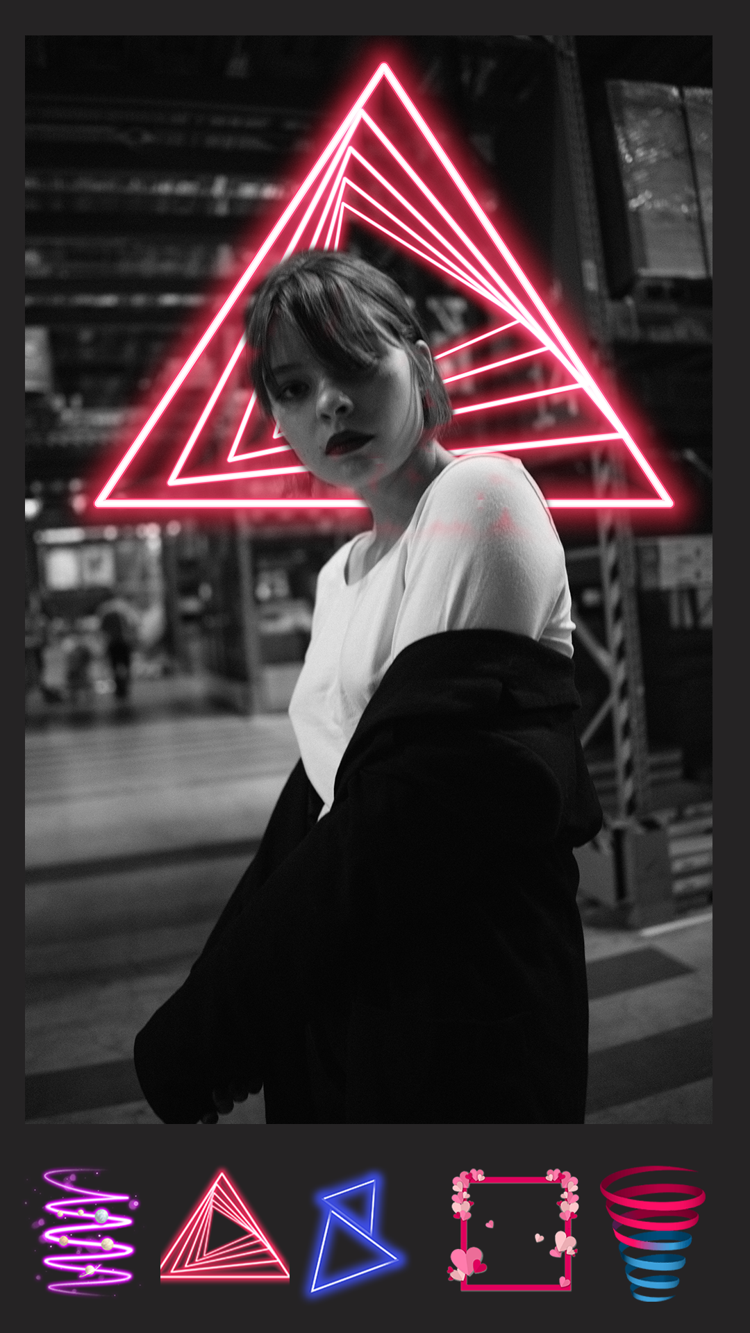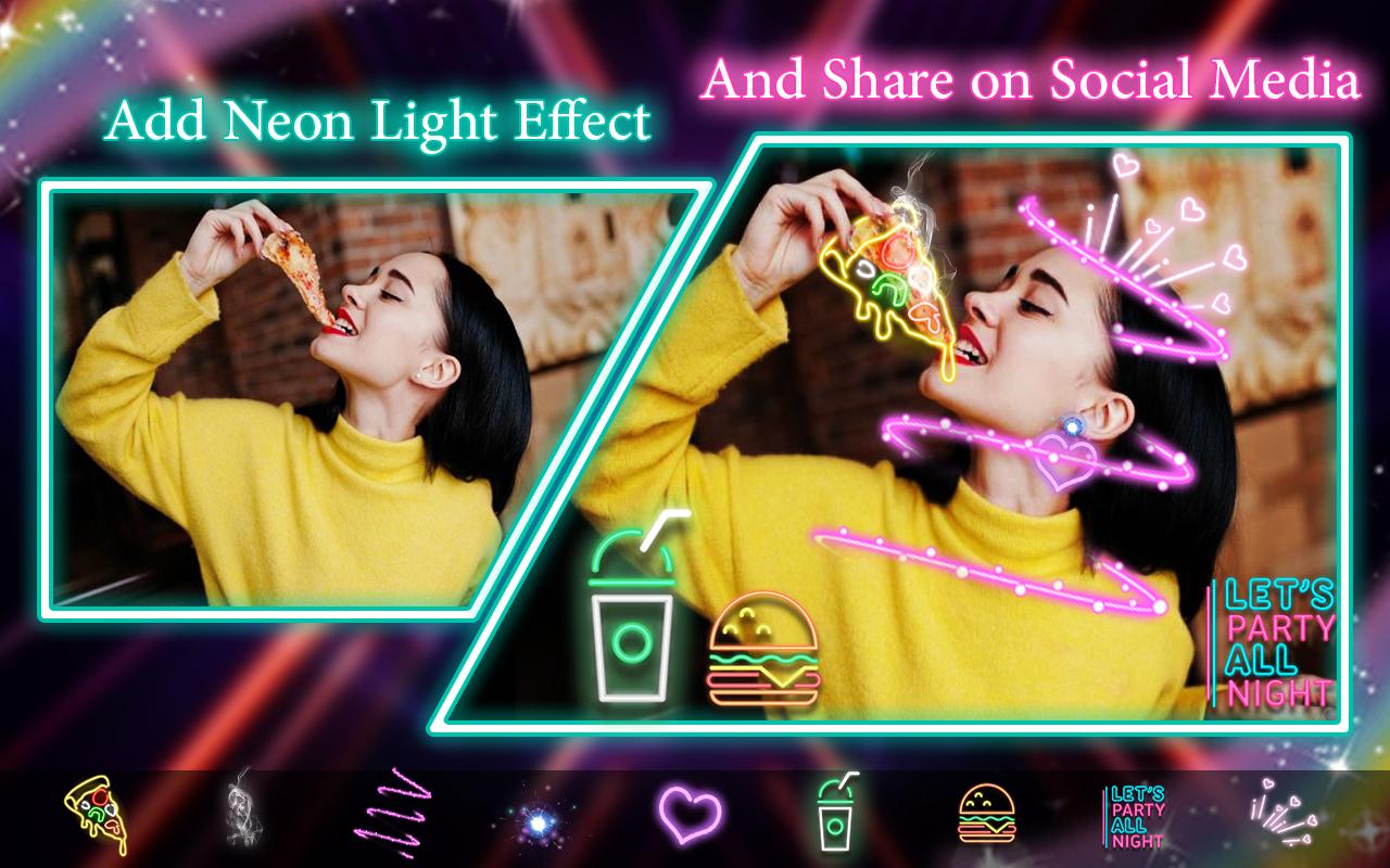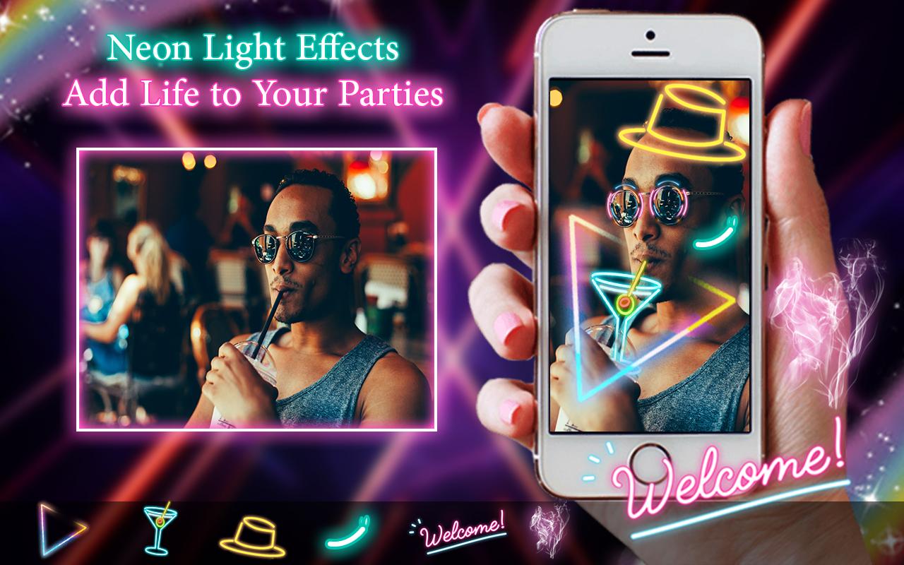 This is another lightweight offering that allows you to add neon stickers to your photos. The app is extremely lightweight and easy to use which makes it a perfect choice for beginners. You can choose from a wide variety of different filters, including the likes of neon shapes, neon signs, neon texts, glasses, headgear and more.