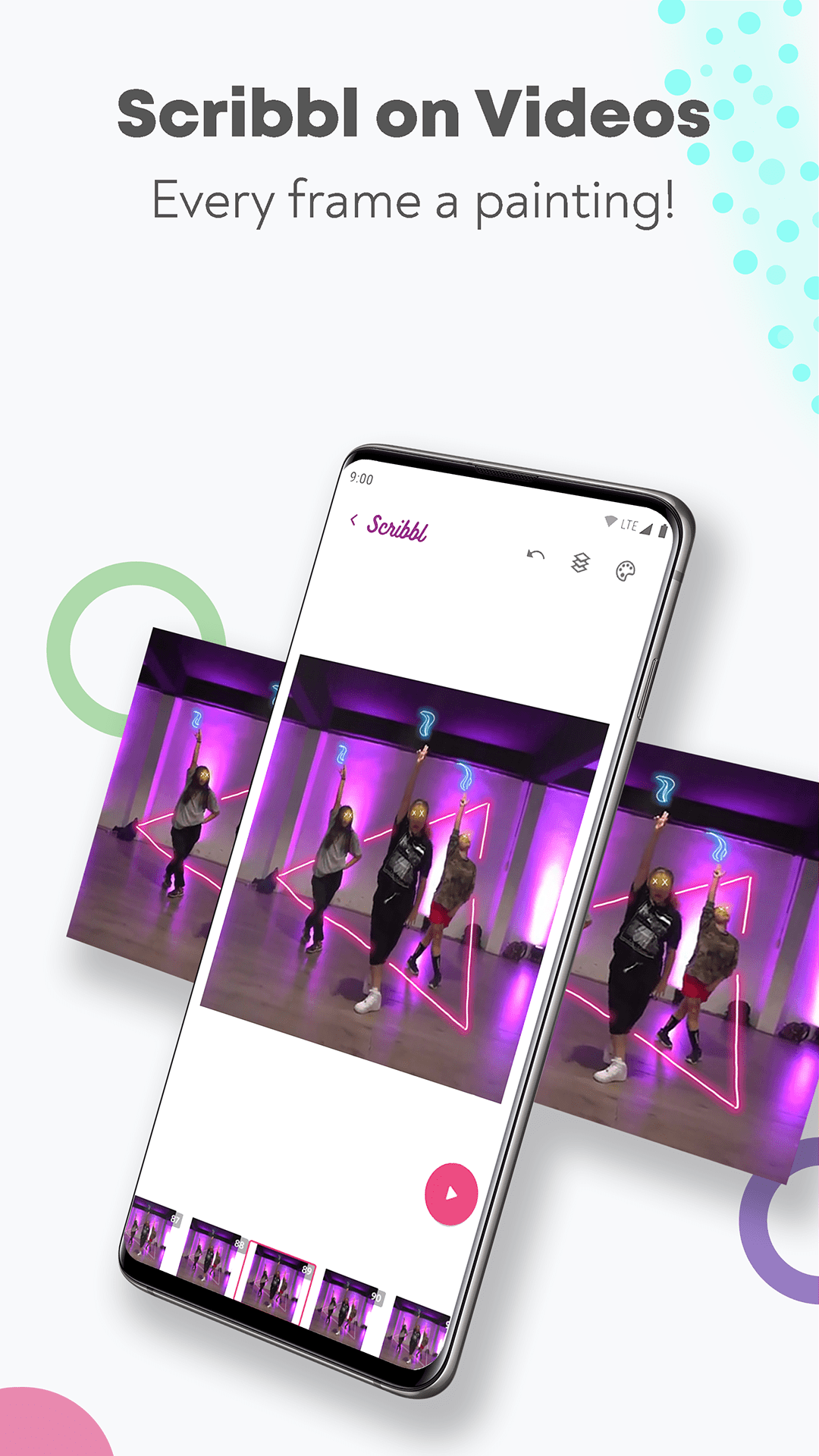 Scribbl’s in-built AI fills in the rest of the frames using your initial drawing which takes away most of the hassle that is associated with animating photos. It has a library for free animations as well that can be added to your content with a simple tap. Additionally for neon effects, you can either use the bundled glow animations or simply draw them using the brush options.