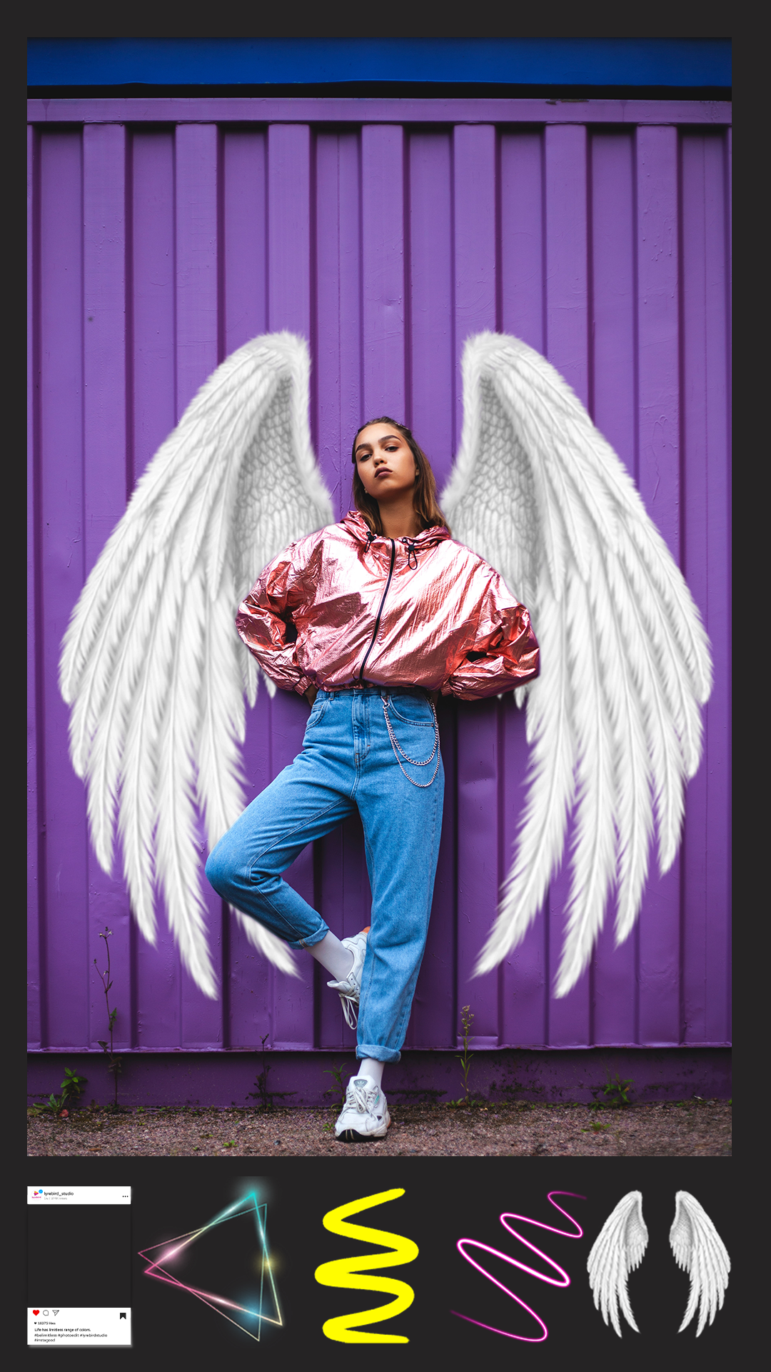 You can even choose from a wide variety of neon ornaments in order to make the best of your photo at hand. Additionally, this library of stickers also includes neon gadgets like headphones, glasses, lightbulbs and more which can be used to accentuate dark photos and help the subject pop out much more easily.