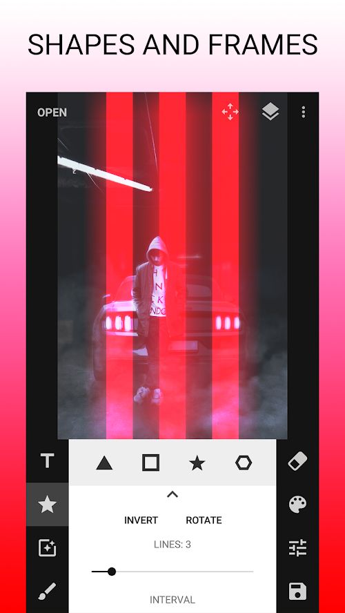 This is another lightweight neon photo editor that comes with a library of neon stickers and various tools to edit your images. You can add text to your photos, apply neon filters, adjust the exposure, add light leaks and even colorful frames. Frames will allow you to focus on the subject in the photo while light leaks will help give it a more artistic look.