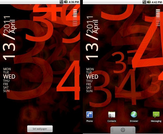 Alive Numbers is not a widget, but a live wallpaper that shows animated time information on the homescreen, fused with minimalistic text that show the battery and current date information. The time info fades in and out as the hours and minutes change. If you’re looking for a useful and cool looking live wallpaper, Alive Numbers is it.