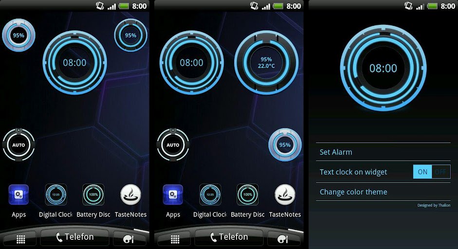 Digital Clock Disc is a simple disc shaped clock widget that looks really cool partly due to the fact that it’s designed keeping the Ice Cream Sandwich Android 4.0 Holo UI in mind. Around 5 different preloaded colour themes allow you to customize the look of the widget. Being stylish and sleek is what sets Digital Clock Disc apart. Download the Beautiful Battery Disc and Brightness Level Disc apps to complement Digital Clock Disc with battery and brightness level indication widgets.