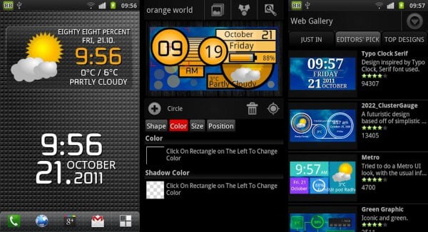 As the name of the app suggest, Make Your Clock lets you design your own clock, letting you customize parameters like shape, colour, size, position; as well as offering different designs, templates and layouts, which you can customize to your heart’s desire. Along with the time, battery and weather information can also be displayed.