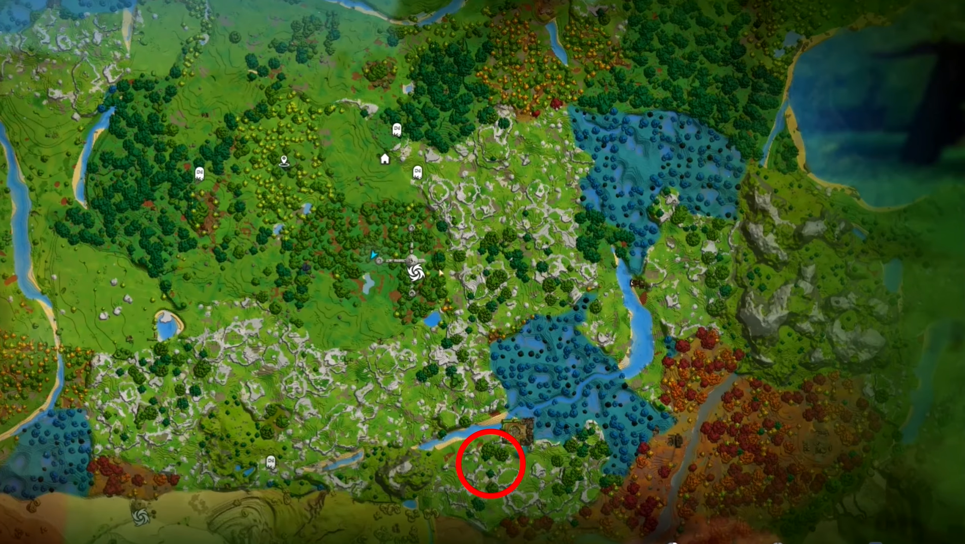 • Ancient ruins give a flat, central spot perfect for a large, expandable main base near portals and biomes.​